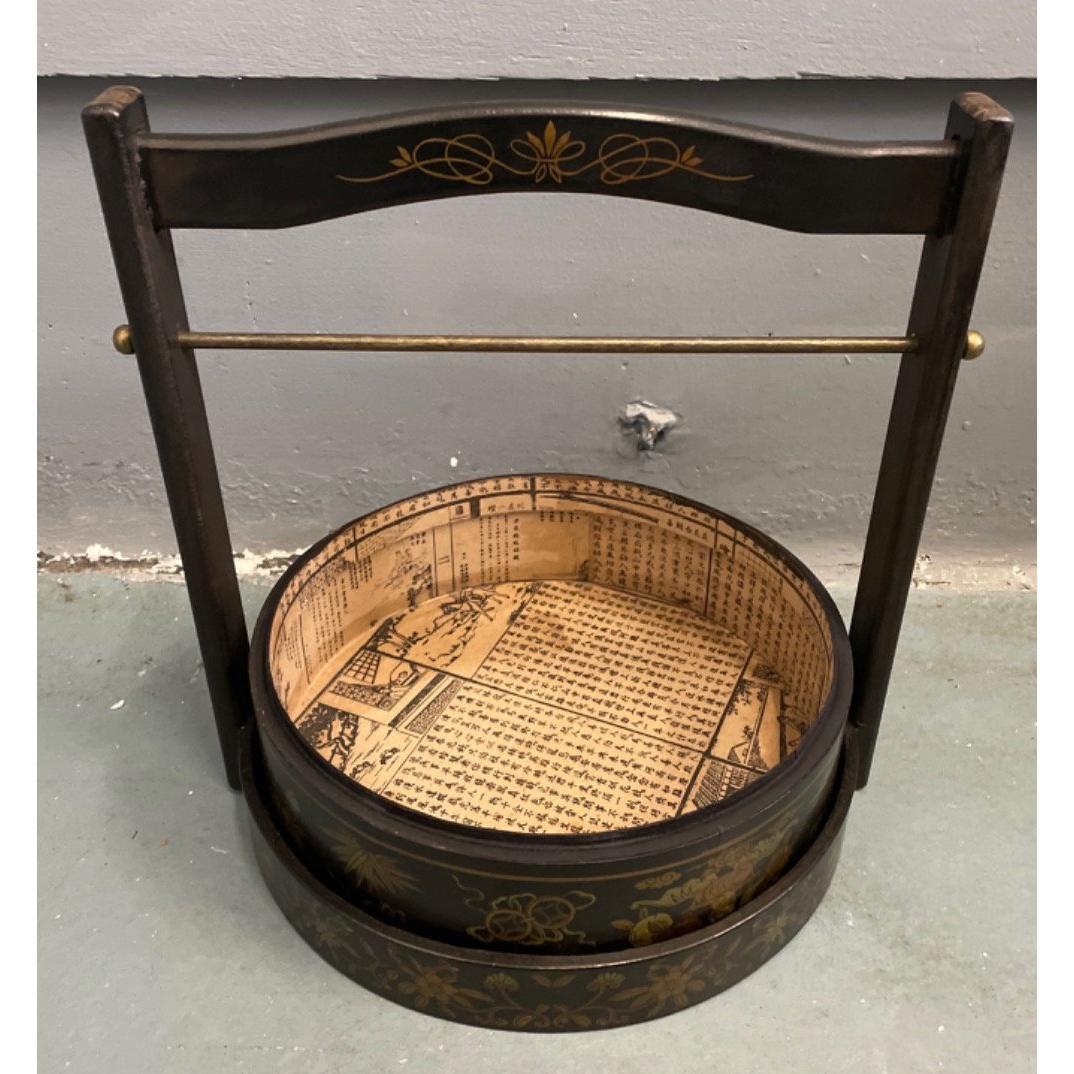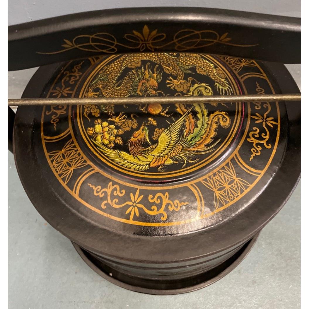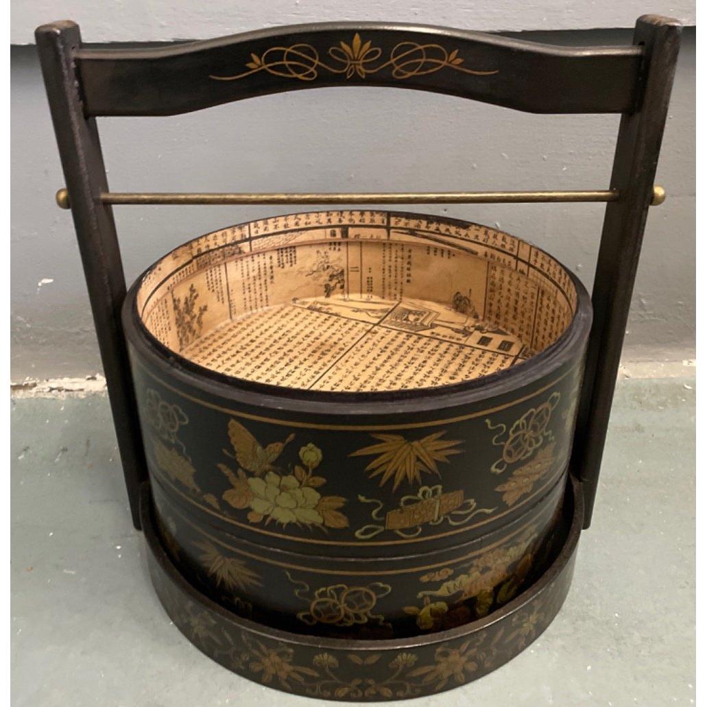 An ORIENTAL HIGHLY decorative black and gold painted and gold floral lacquered 3 layer carry mock food carrier - unused item in storageW: 26cm approx H: 33cm approx D: 26cm approx