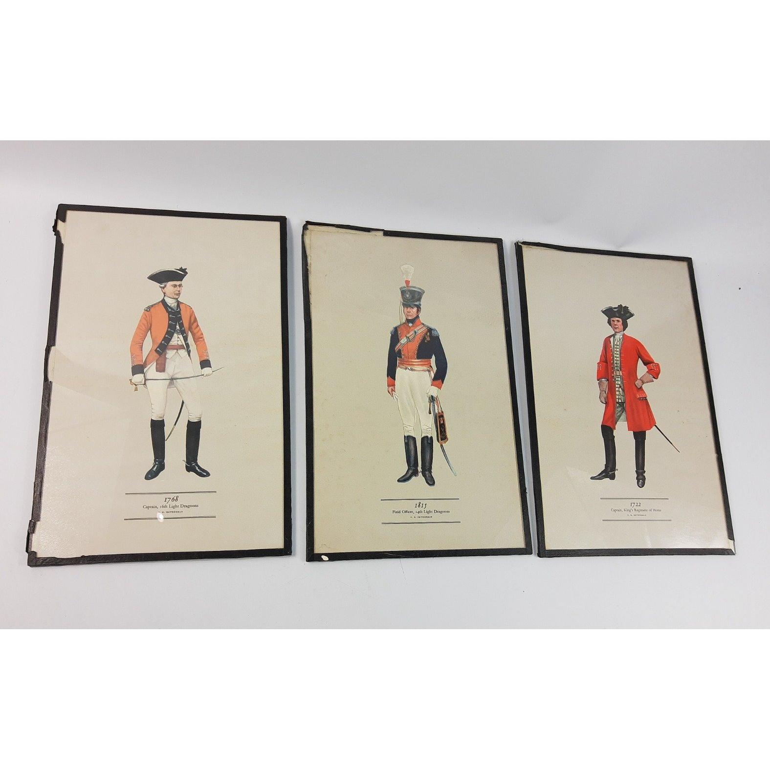 A set of six PH SMITHERMAN (Colonel Philip Henry Smitherman (1910-1982) Military School) prints of British army uniforms to include Captain, King's Regiment of Horse (1722), Captain 16th Light Dragoons (1768), Captain 18th Hussars (1815), Major 6th Dragoon Guards (1818), Officer, 7th Queen's Own light Dragoons (1798) each 37x24cm, plus a set of RCMP uniforms being a sergeant from 1874, 1898 and 1979