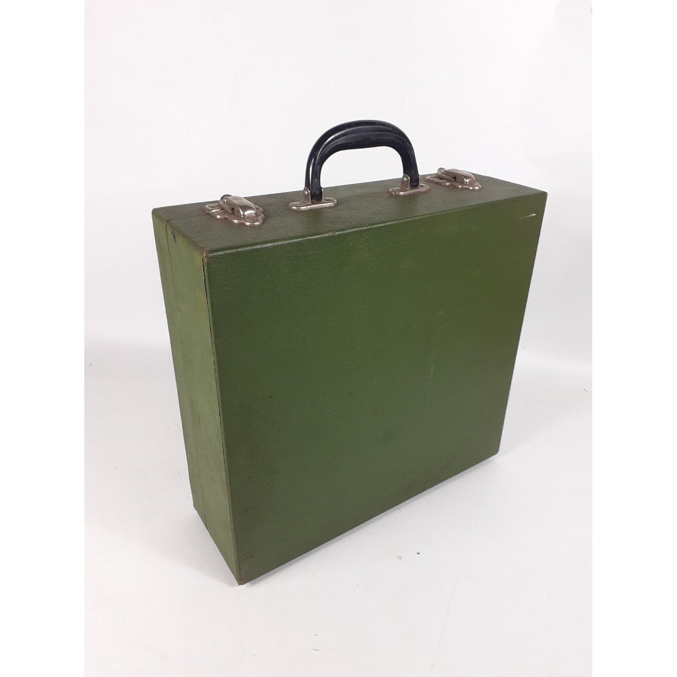A vintage BREXTON picnic case including 2 cups, 4 saucers, 4 teaspoons, 2 vacuum flasks, one by THERMOS, 2 glass jars for sugar and tea and a tin for sandwichesApprox 1 pieces
