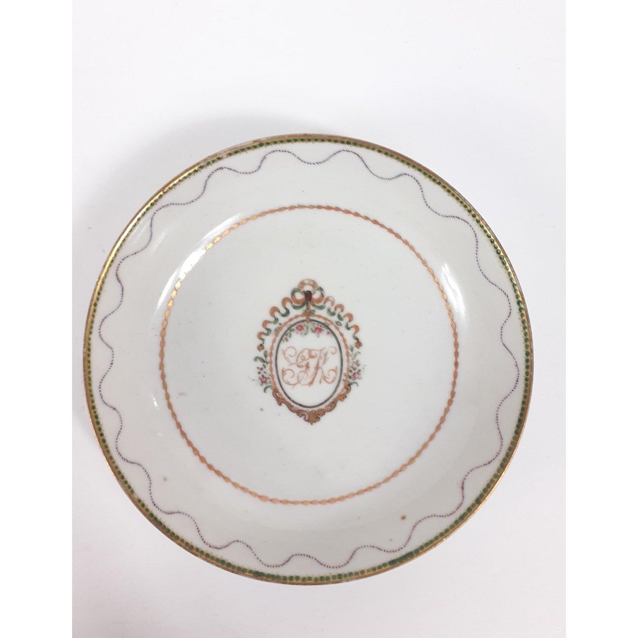 A STUNNING 18th Century Chinese Armorial tea bowl and saucer, Qianlong period 1736 - 1795. Finely decorated with the initials 'GK' on both pieces. Highly gilded throughout and some lovely Famille Rose decoration. A good, honest foot rim on both pieces. Dimensions - Tea bowl 8.6cm wide and the saucer 14cm wide. Condition - both pieces in good condition. A very small hairline crack on the tea bowl and some nibbles on the rim of the saucer. STUNNING PIECES!