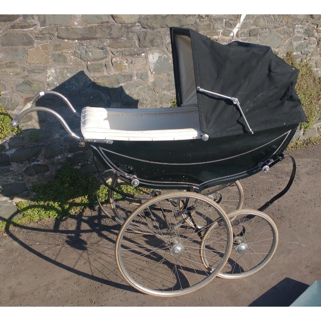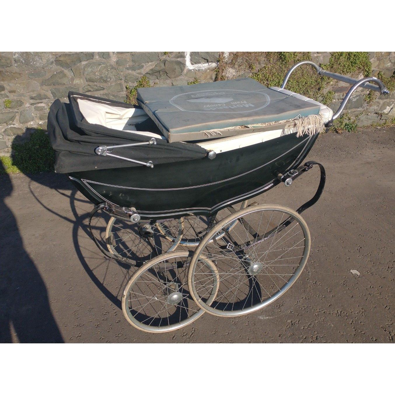 Osnath pram in black with a Moreland's green cover - These prams are bought by ROYALTY!