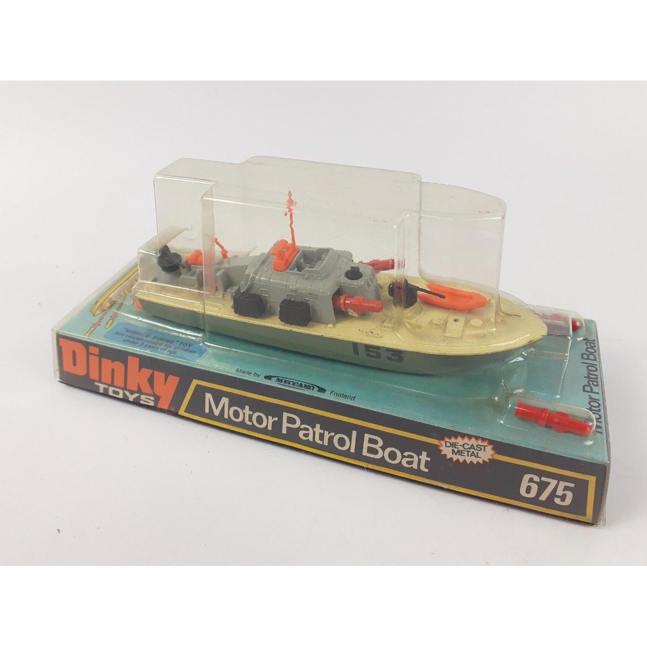 DINKY 675 Motor Patrol Boat in original Box. AMAZING condition complete with torpedoes and display case. THe plastic case is in excellent order and free from yellowing.Approx 1 pieces