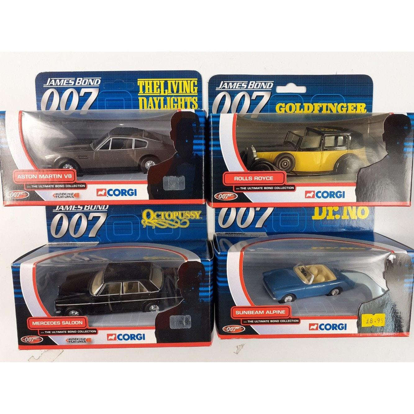 8 JAMES BOND Diecast models to include: Sunbeam Alpine, BMW 750I, Aston Martin DB5, BMW Z3, BMW Z8, Mercedes Saloon, Aston Martin V8, Rolls Royce Goldfinger.Approx 8 pieces