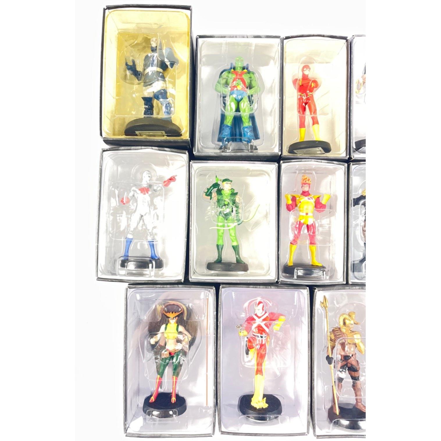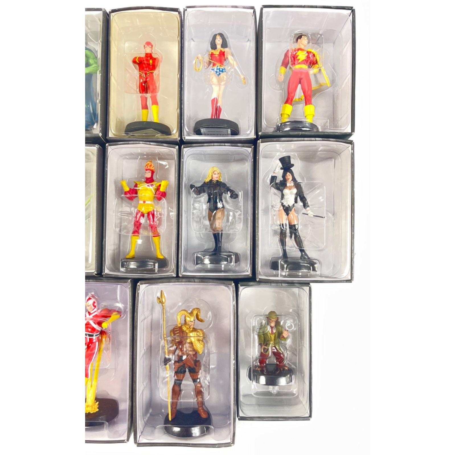 DC Comics - JUSTICE LEAGUE a collection of blister packed, unopened EAGLEMOSS diecast figures to include Captain Atom, Green Arrow, Zatanna, Darkseid, Wonder Woman, Hawkgirl, Flash, Adam Strange, Detective Chimp, Magog, Shazam, Martian Manhunter, Firestorm, Black Canary