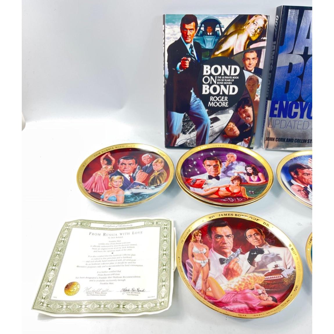 JAMES BOND collection to include Hardback books The DK James Bond encyclopedia, Bond on Bond by Roger Moore and eight FRANKLIN MINT James Bond collector plates in packaging. Attractive lot.