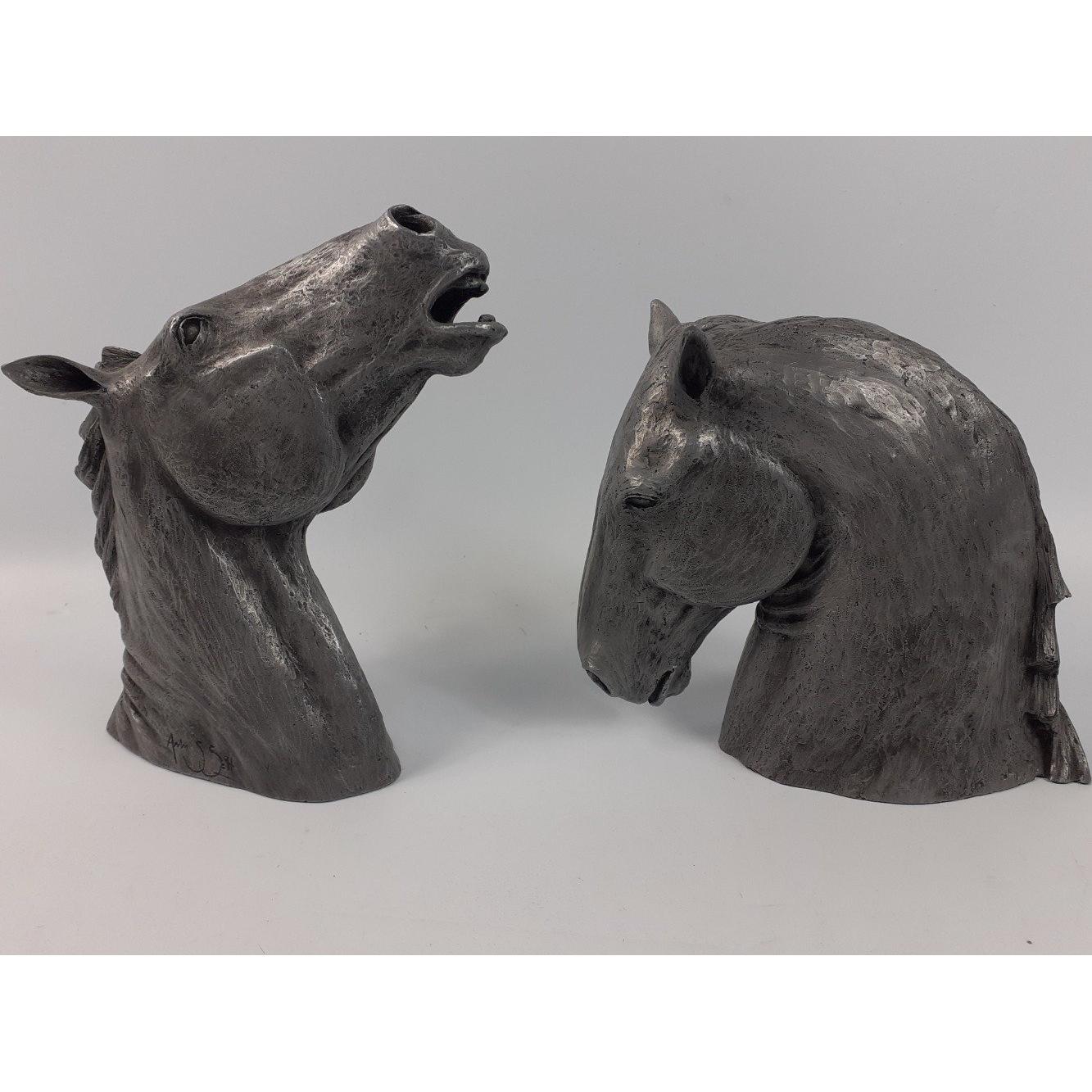 KELPIES - a pair of resin Kelpie statuettes standing approx 19cm high, plus a framed photo print of the full-sized Kelpies in situ (39x31cm approx) Approx 4 pieces