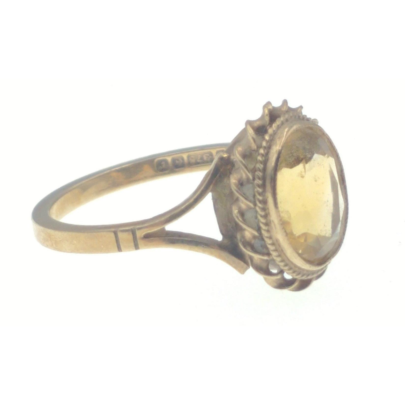 A 375 stamped yellow gold ring with citrine stone ring size K gross weight 2.24g with also a 9ct stamped garnet and tiny white stones with one diamond(tested) dress ring(one small diamond ring size O gross weight 1.64g approx missing)