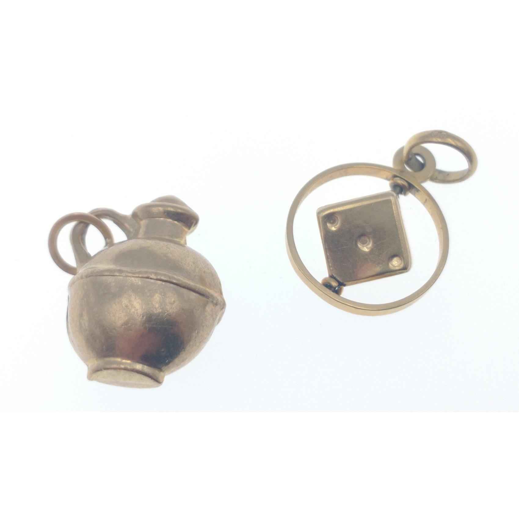 A collection of 4 charms, 3 stamped 9ct and 375, and the urn is not stamped - 3 gold charms 4.90g approx, and the unmarked 'yellow metal' charm 1.82gApprox 4 pieces