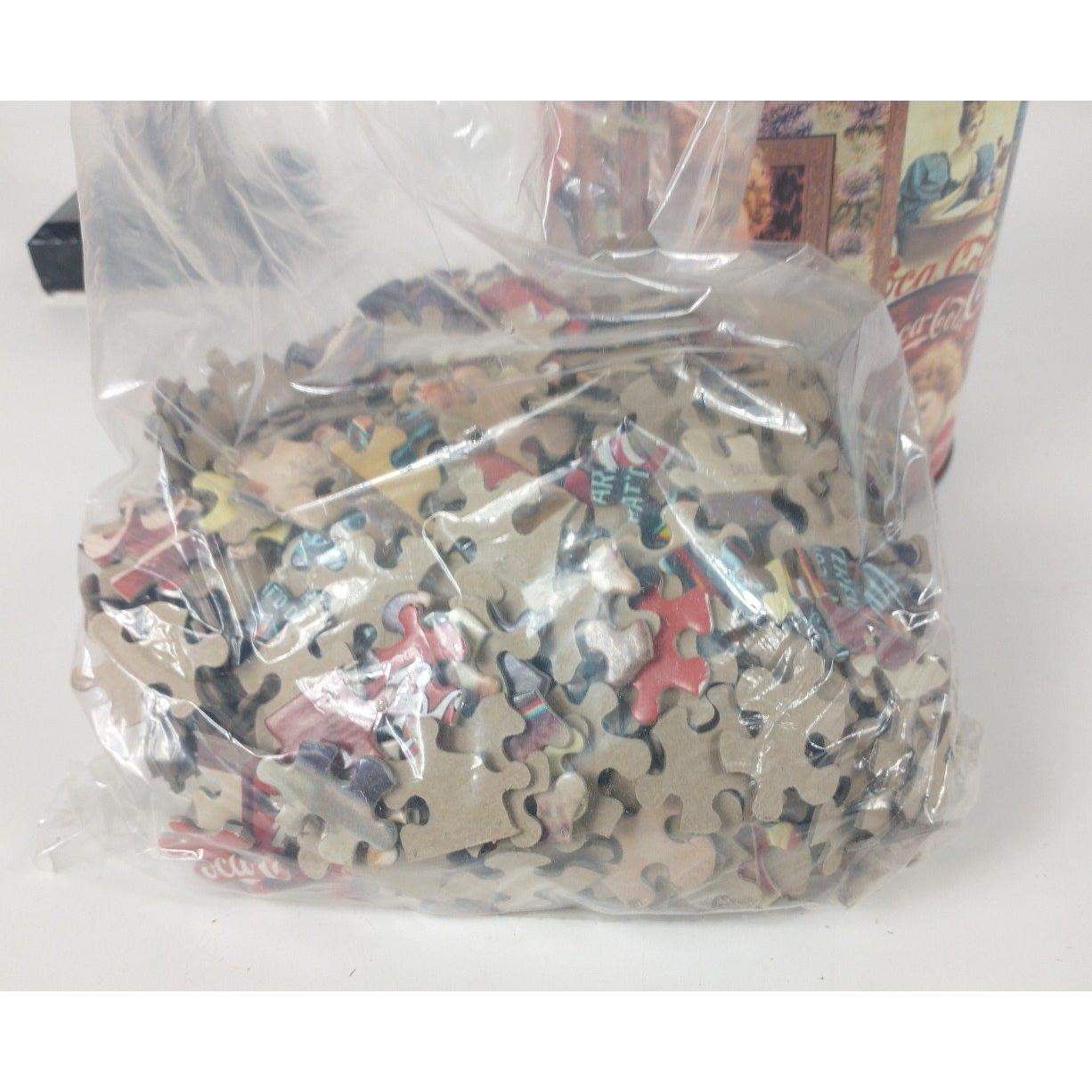 COCA COLA memorabilia to include a Coke tin (16cm tall) containing an unopened 700 piece jigsaw puzzle, and a white metal Coke bottle on a wooden plinth (23cm tall)Approx 2 pieces