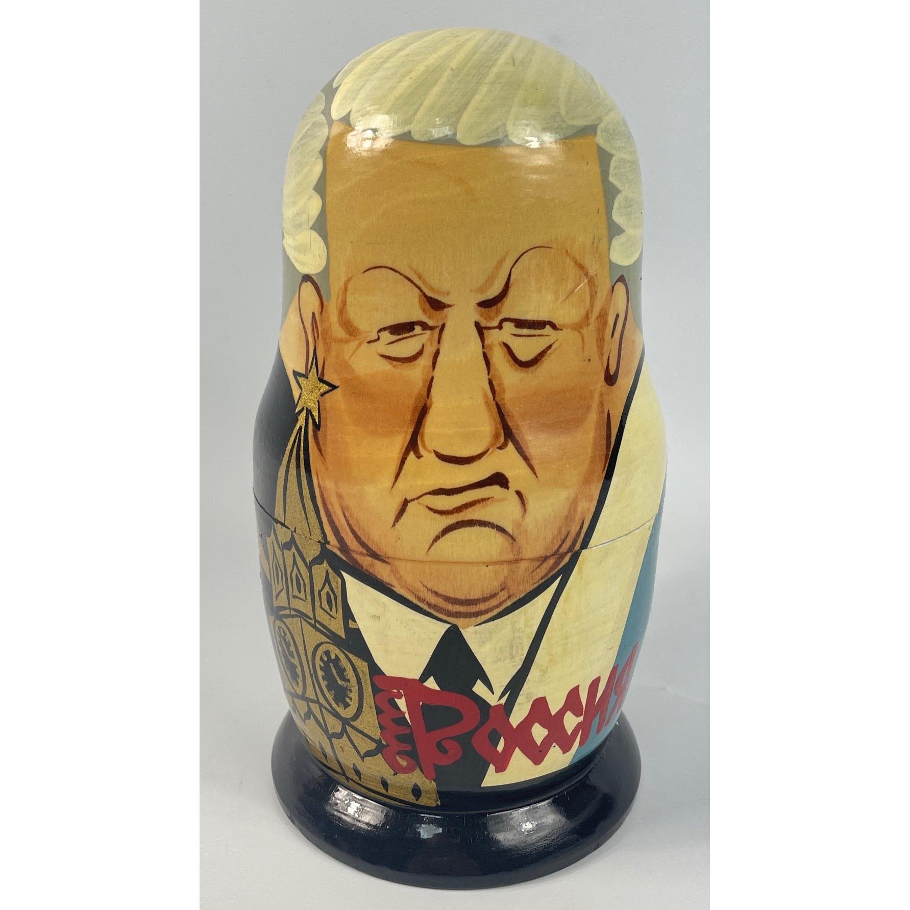 Handpainted RUSSIAN Matryoshka doll x7 pieces depicting Russian Presidents - outer doll height 19cm approxApprox 7 pieces