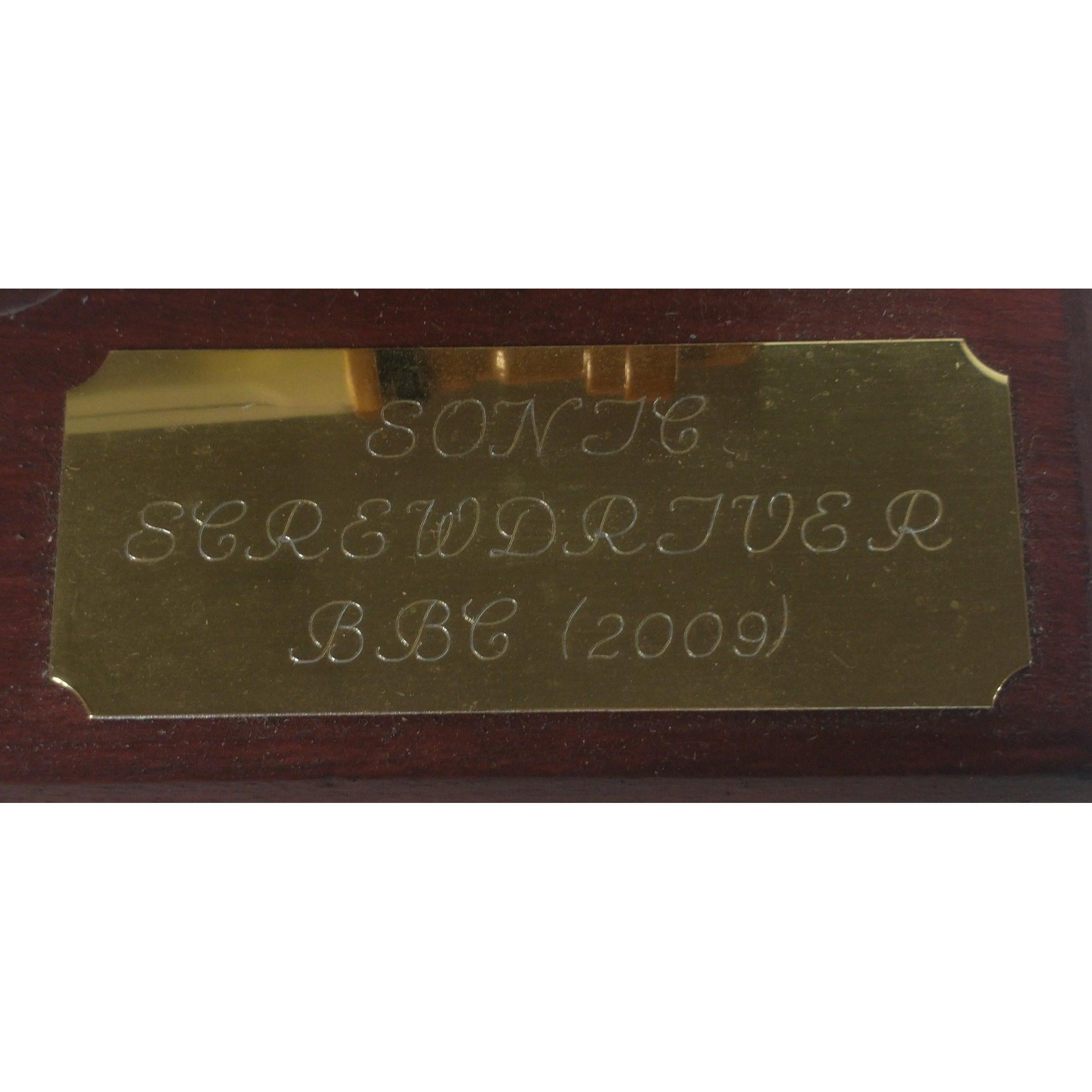 DOCTOR WHO -sonic screwdriver (2009) mounted on a wooden plinth with brass labels (25x5cm)Approx 1 pieces
