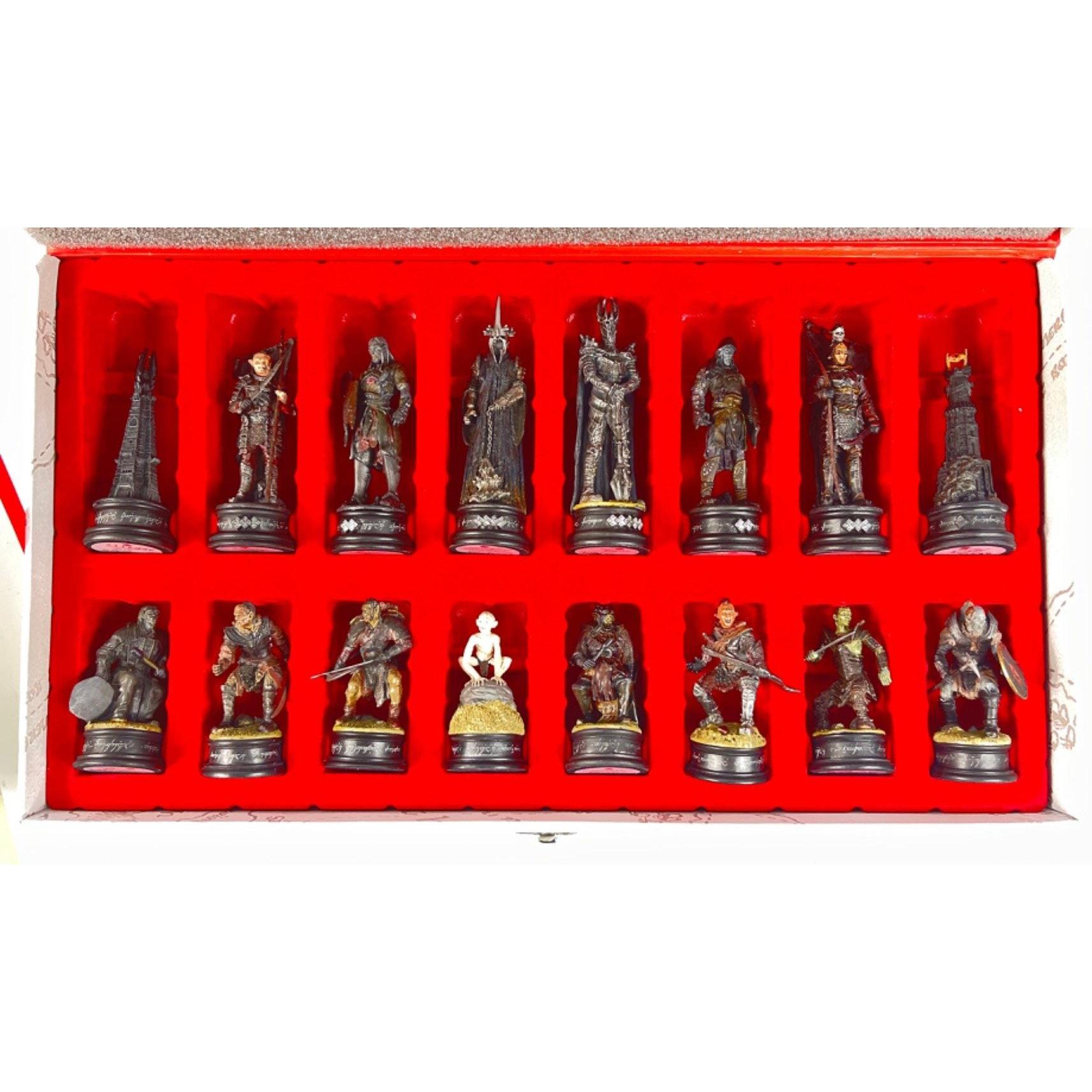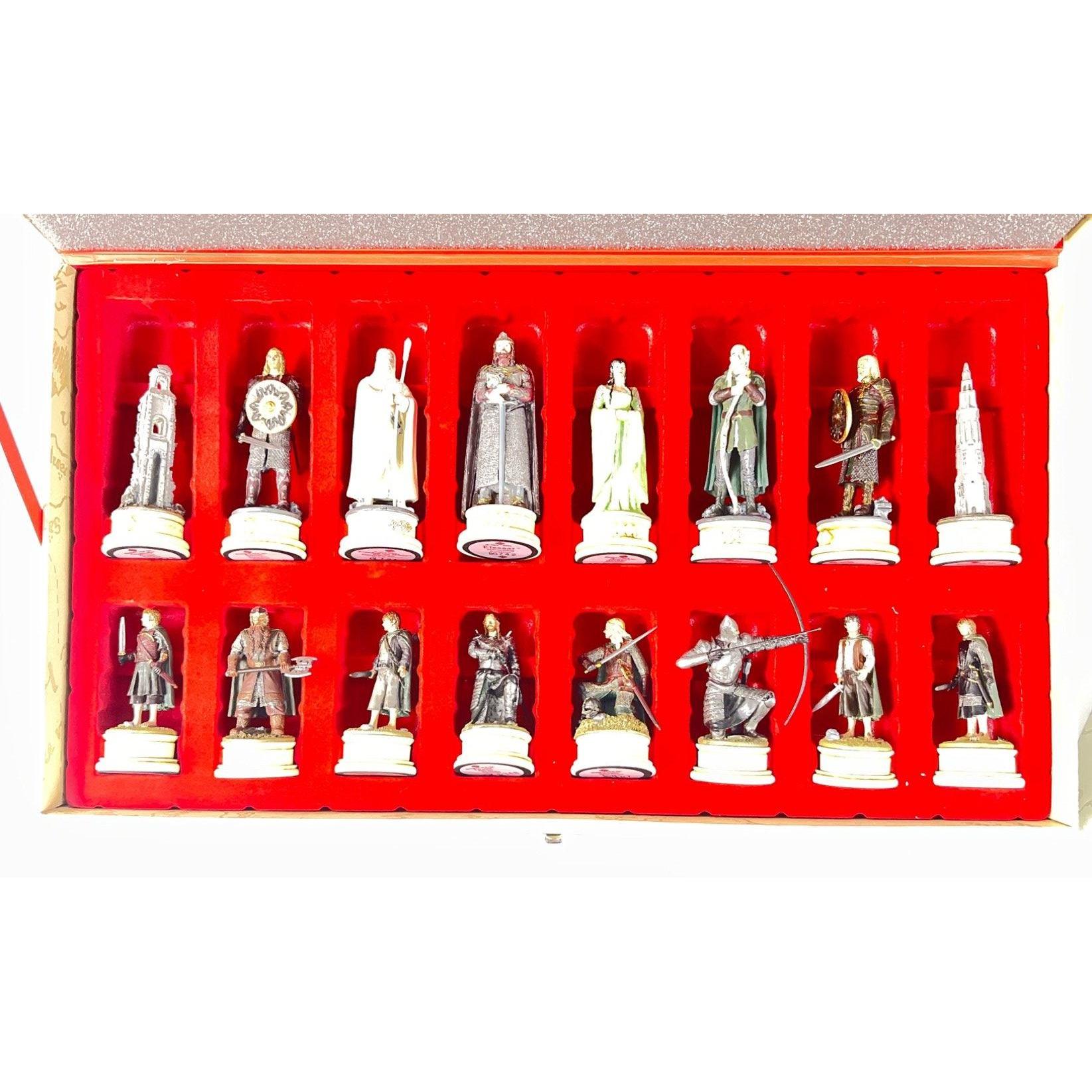 LORD OF THE RINGS diecast chess set by New Line Production , the figures range in size from 9cm down to 6cm and are presented in two fitted cases - brand new never used in mint condition