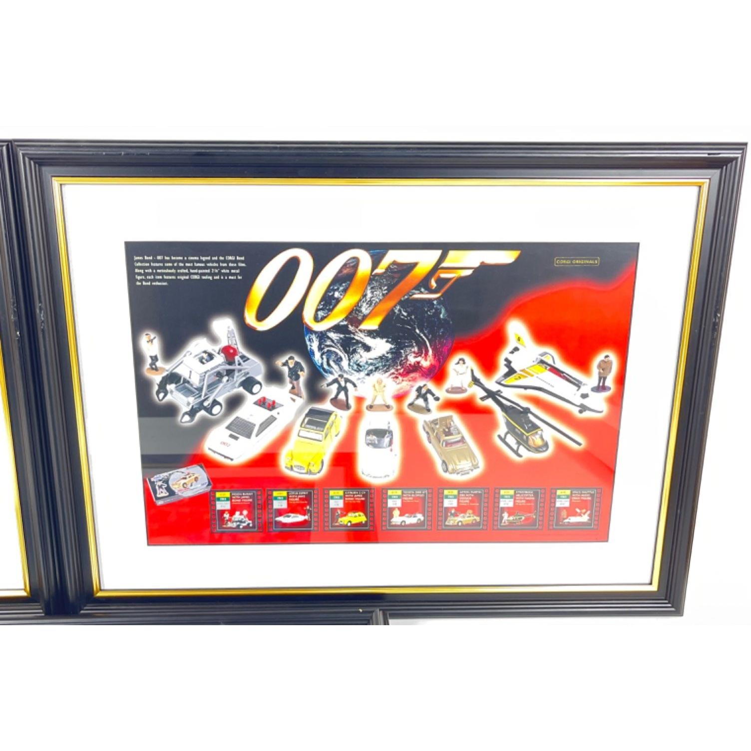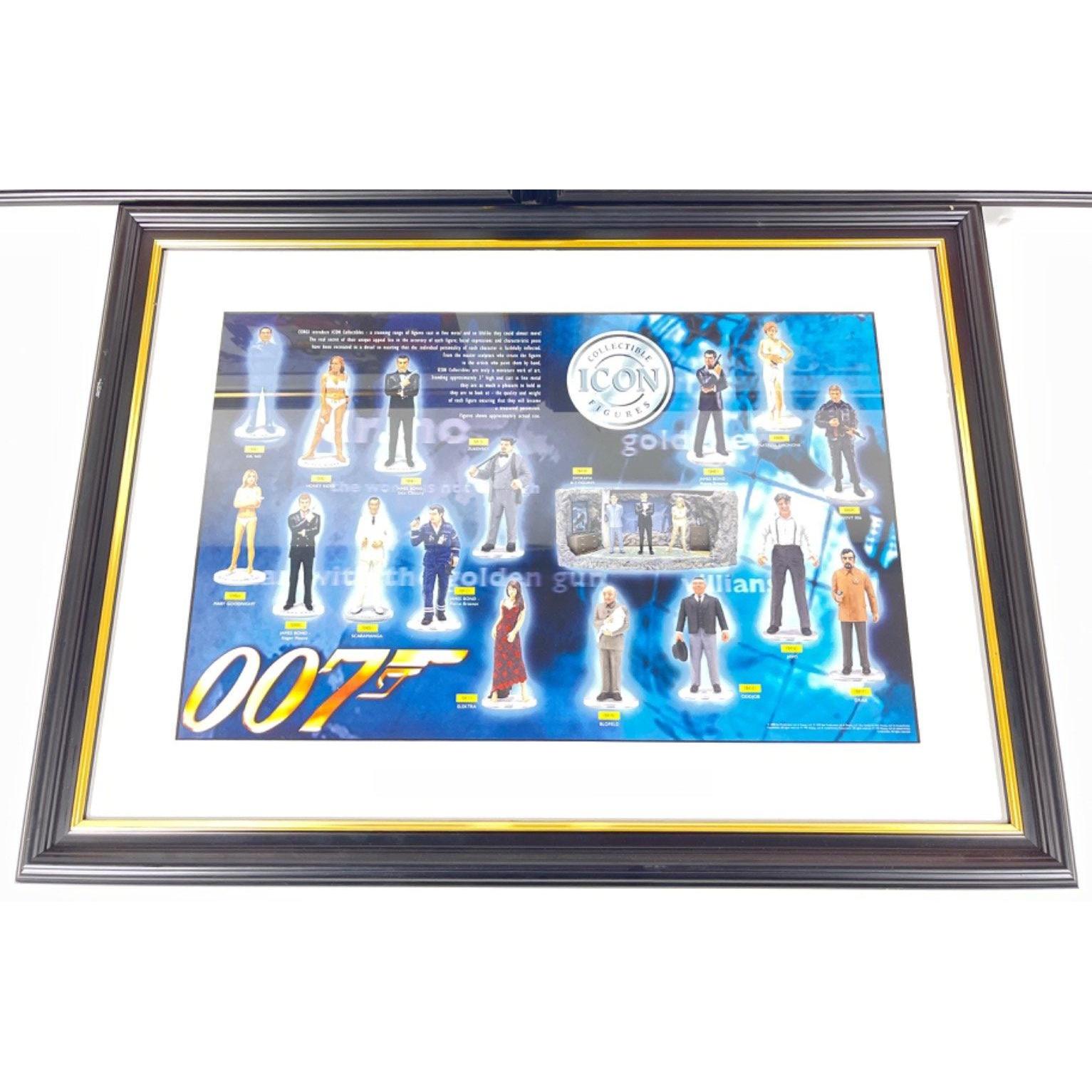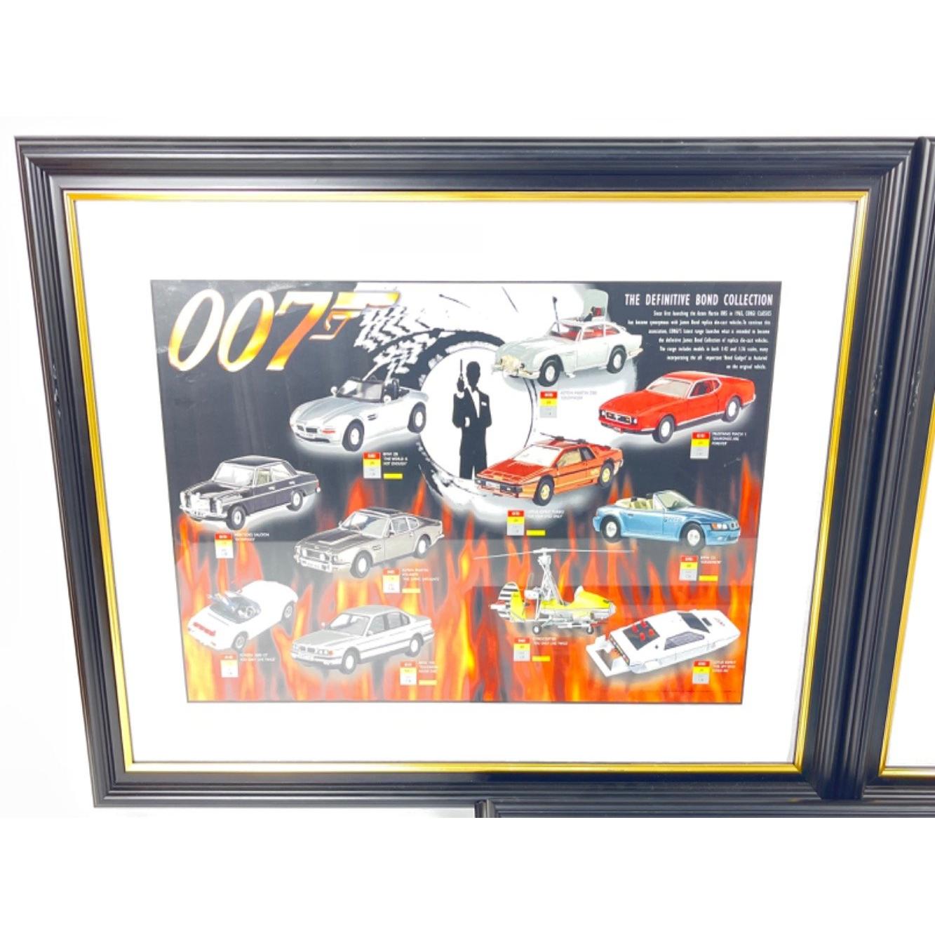 JAMES BOND - framed poster of the Icon Collectible Figures (59x43cm), poster of Corgi Bond Collection cars (59x43cm), and a poster of Corgi Classics James Bond Collection (frame size 59x43cm),