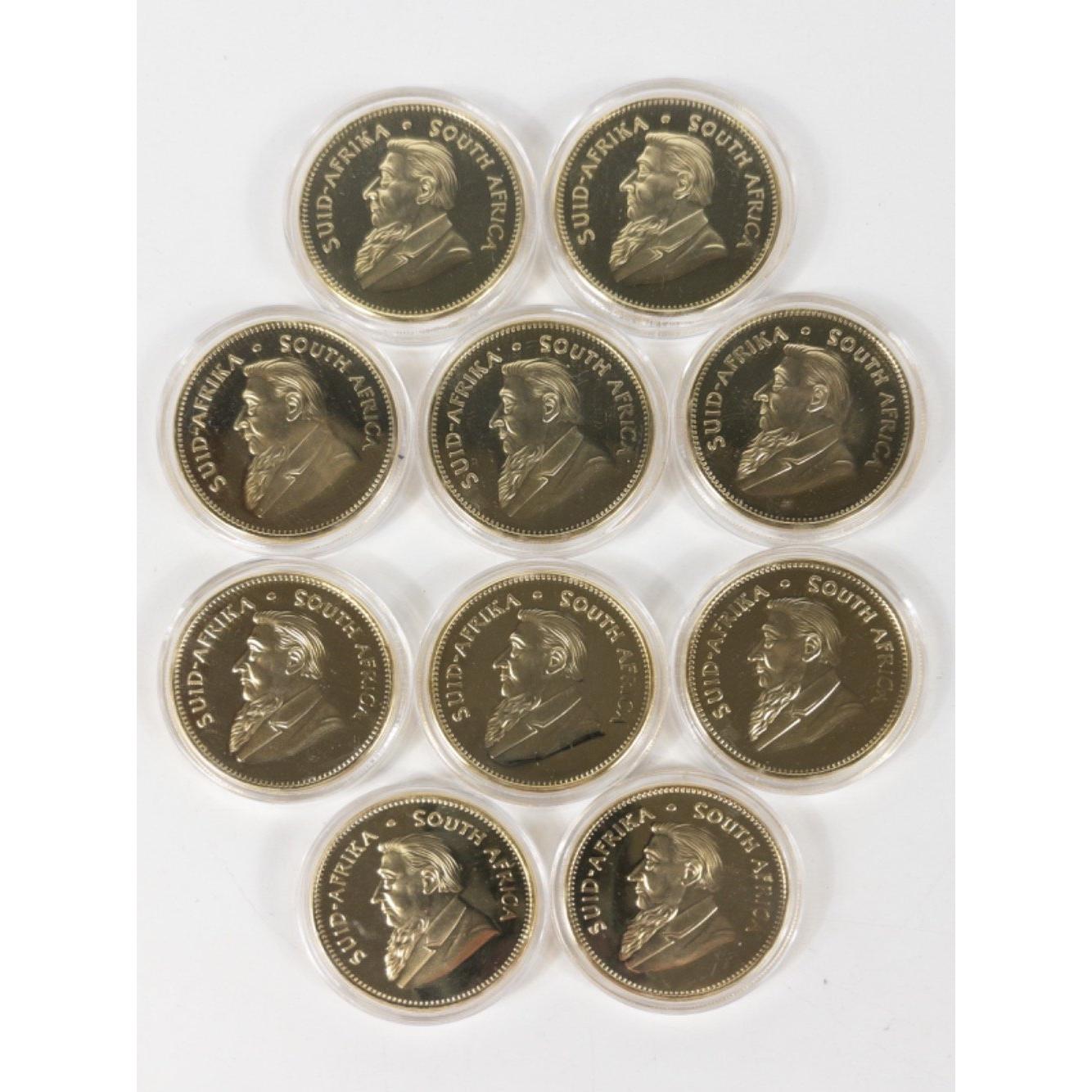 10 x 1 oz Gold Plated South African Krugerrand Decorative Coins THE BUYING COMMISSION IS REDUCED TO 15% plus vat on this itemApprox 10 pieces