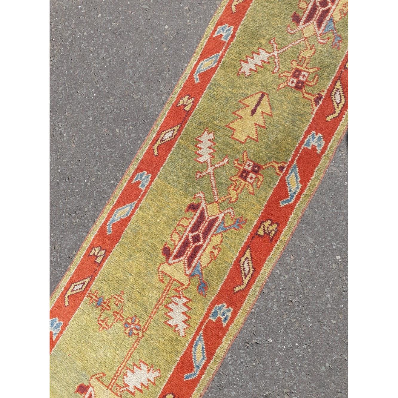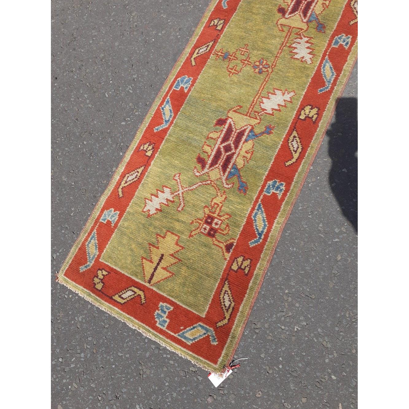 A stunning vintage wool Turkish Usak runner. The design of this Usak rug is easily recognized by its distinctive geometric design and medallion pattern.