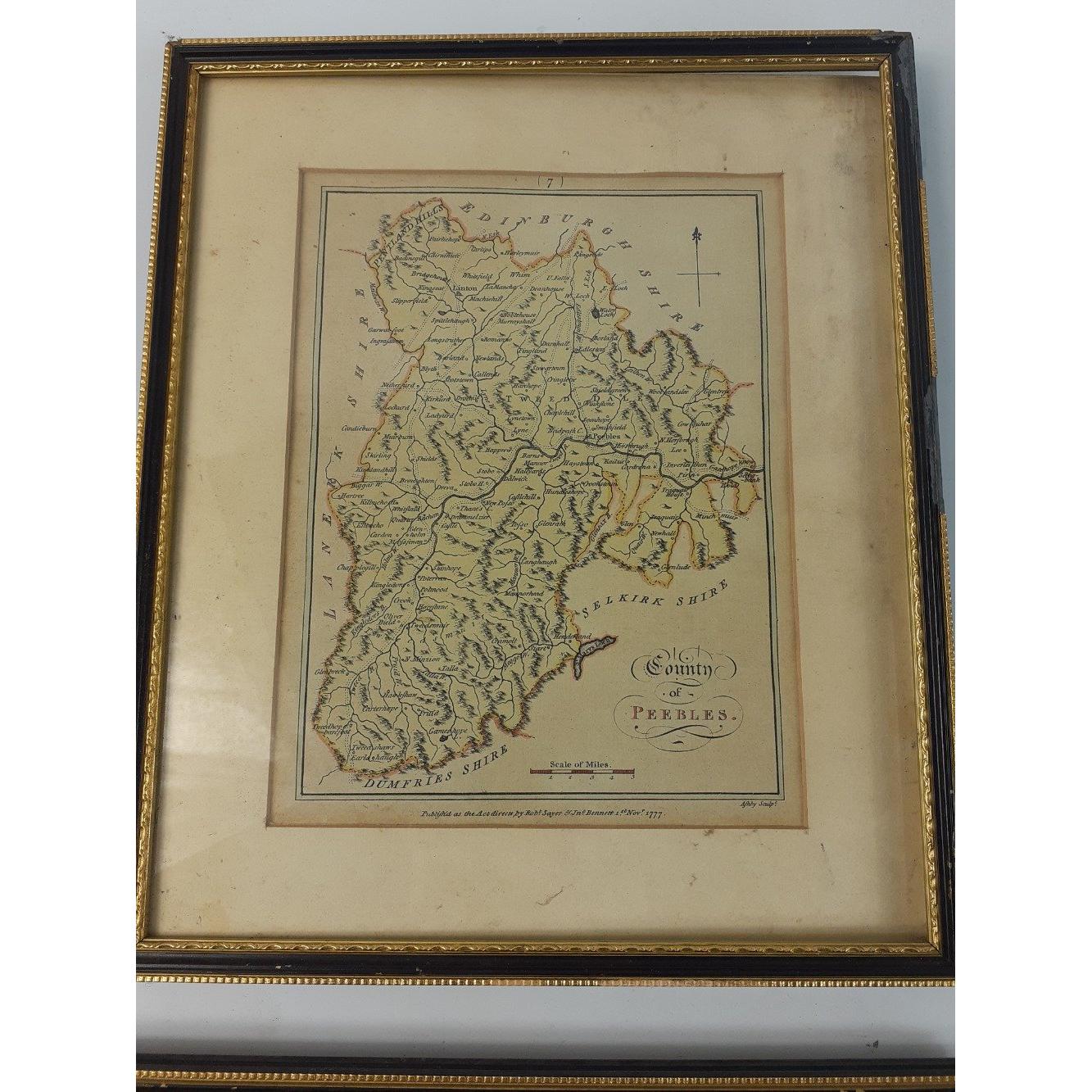 4 small framed prints of local views including a MAP OF THE COUNTY OF PEEBLES