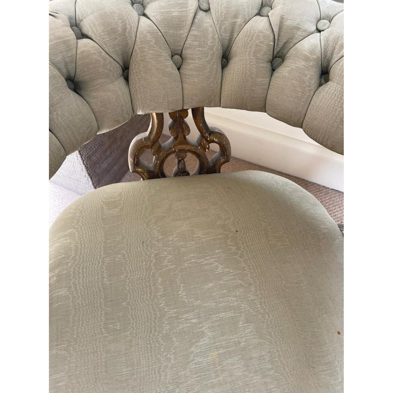 ANTIQUE FRENCH gilt tub low level style chair with gilt decoration - width of arms 70cm apart and 64cm height to the back of the chair from the floor