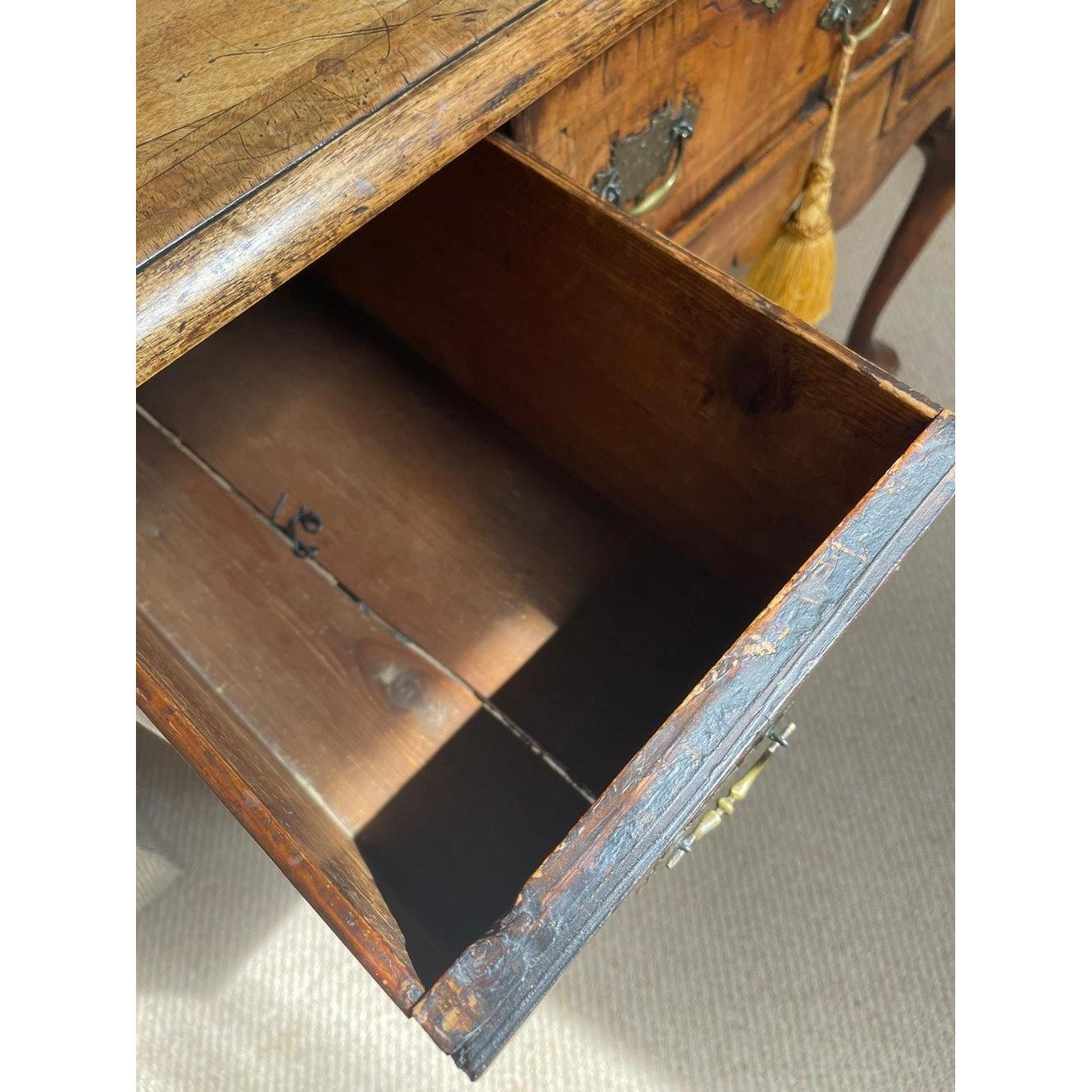A c1730's WALNUT LOWBOY on cabriole legs with original brasses with engraved backplates - 73cm height x 95cm length x 48cm depth approx