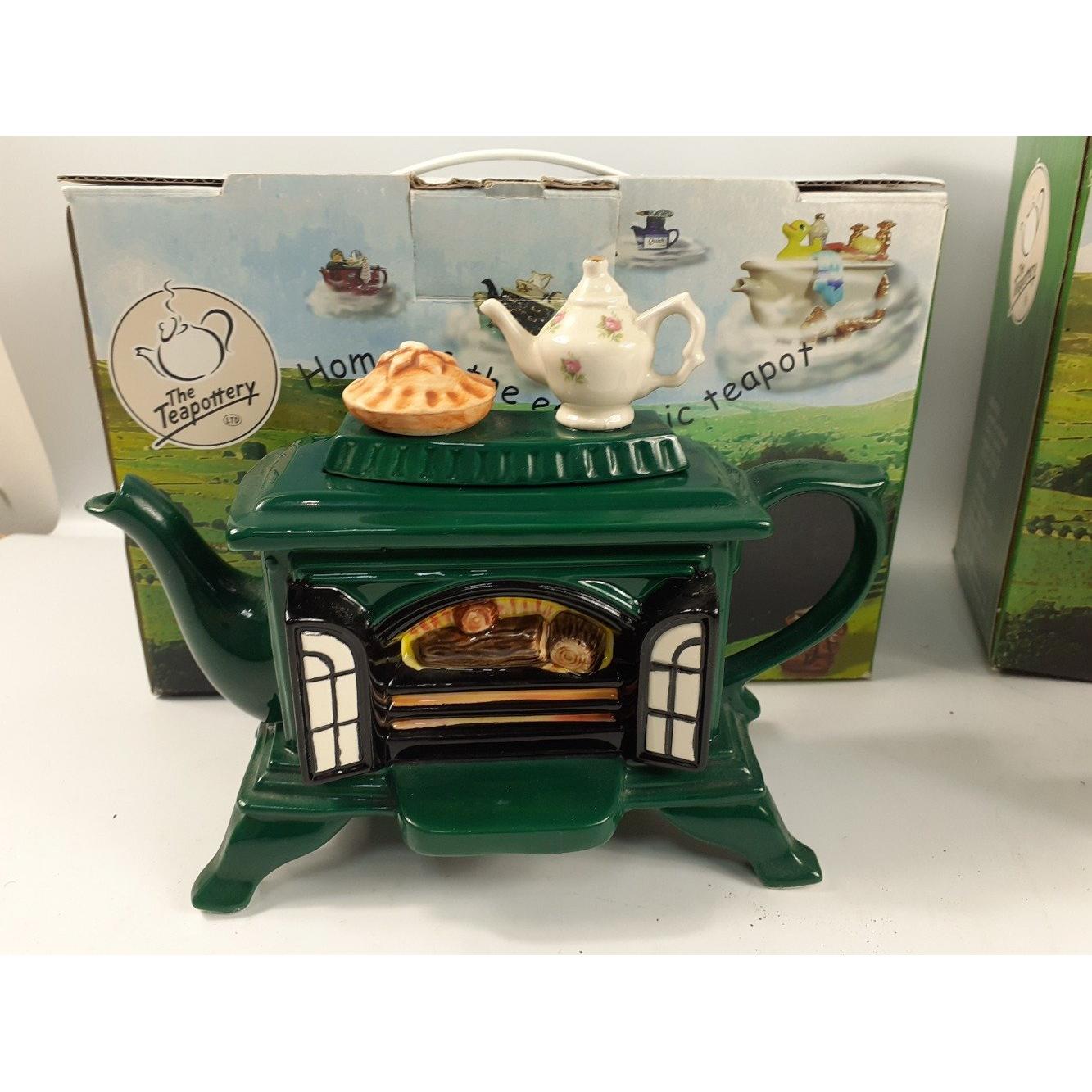 A TEAPOTTERY Jubilee Range brown teapot, a green range teapot from the TEAPOTTERY, and a BESWICK cottage-shaped butter/cheese dish 20x13cm high approx), Approx 3 pieces