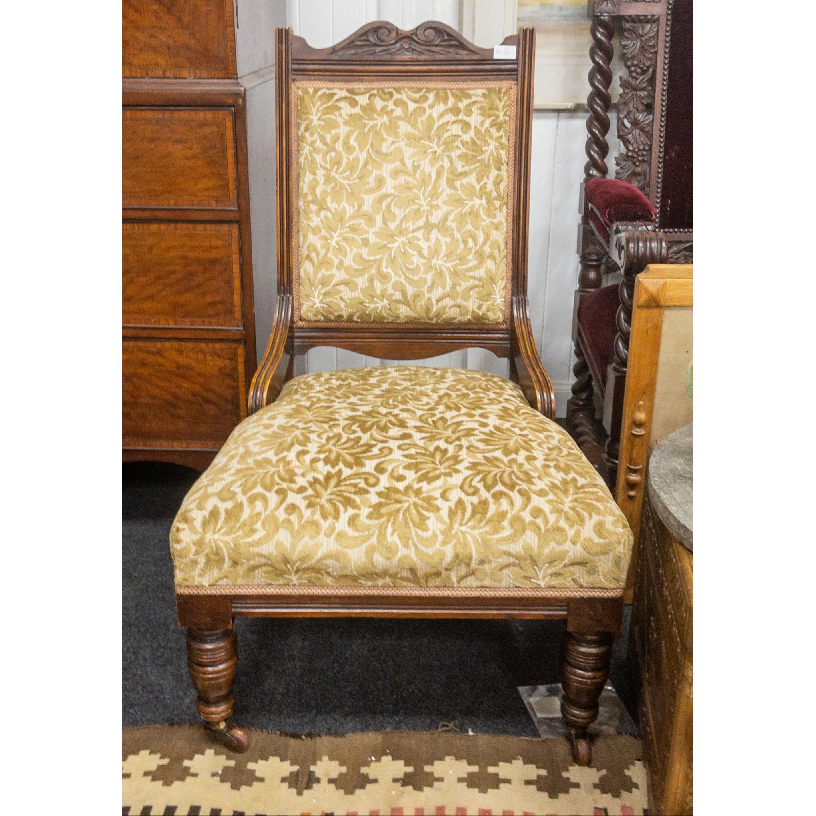 A nice EDWARDIAN padded and upholstered chair with oak carved frame, in lovely condition Approx 1 pieces
