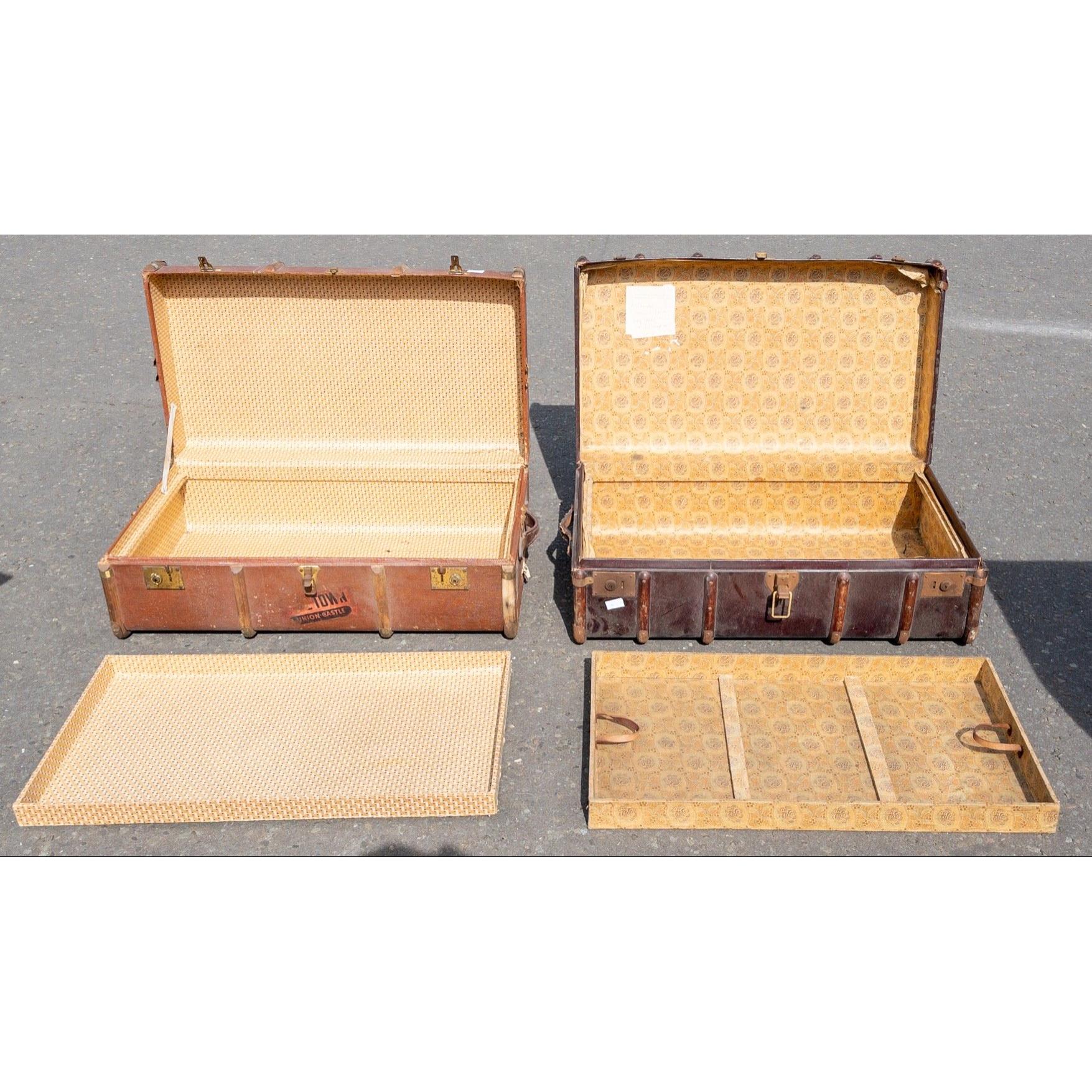 TWO VINTAGE c1920's STEAMER TRUNKS with wooden bentwood bindings - dimensions each 92cm long x 50cm depth x 30cm height approx they make great coffee tables!Approx 2 pieces