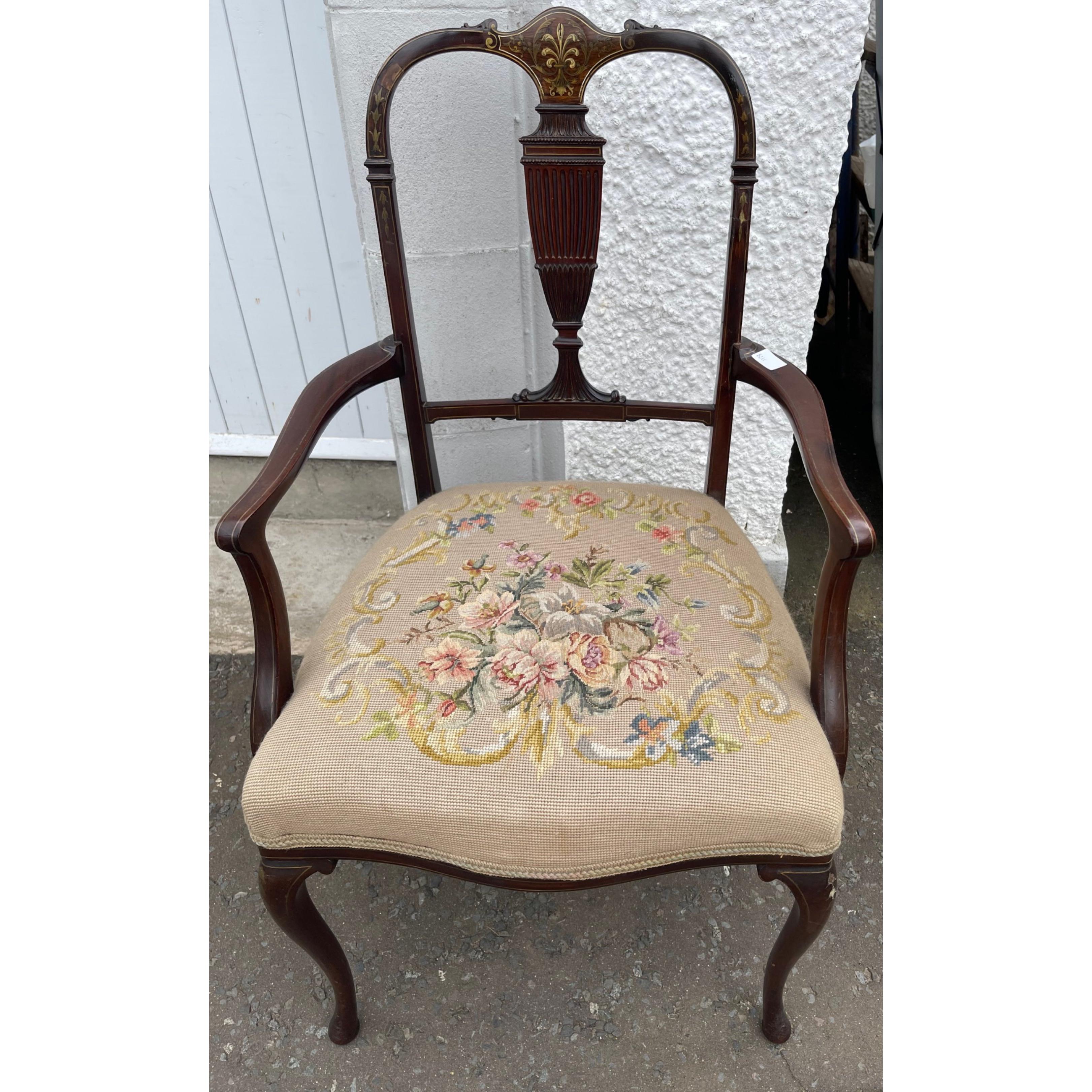 A quality vintage dining carver chair with tapestried seat pad - really nice quality!