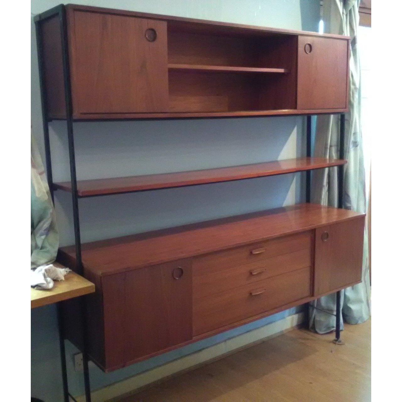 RETRO AVALON makers mid- century TEAK design split-level sideboard within a black iron frame - dimensions