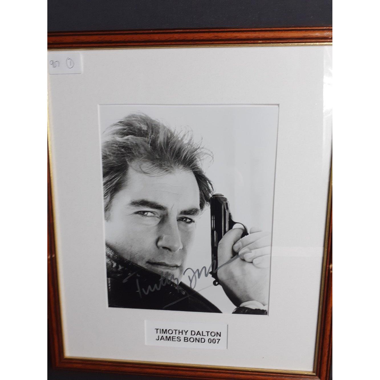 An AUTOGRAPHED Timothy Dalton JAMES BOND framed photo by Romarc Autographs with its certificate of authenticity(14th October 2002) - dimensions of the frame is 31cm x 41.5cm approx