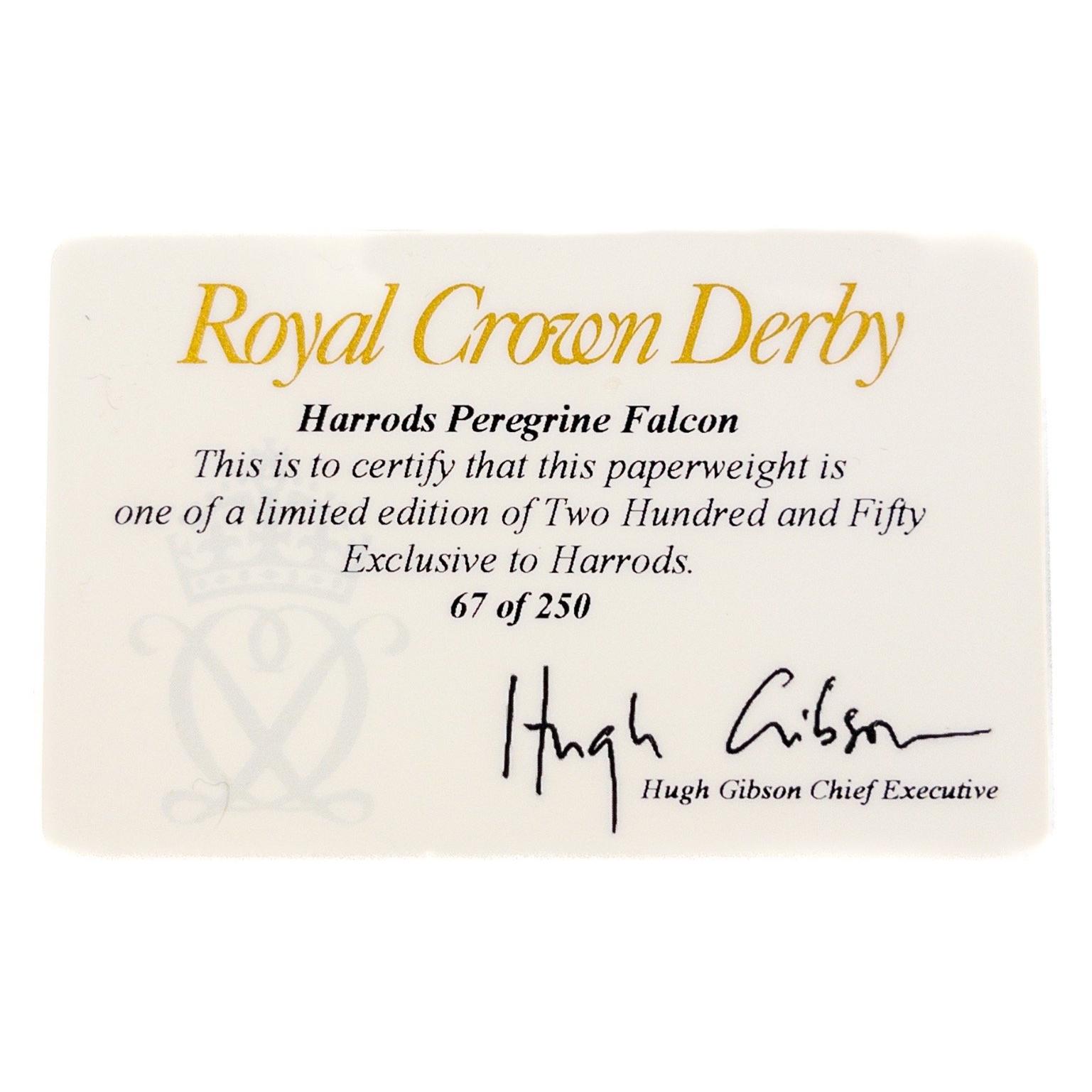 ROYAL CROWN DERBY HARRODS LIMITED EDITION Peregrine Falcon gold button first quality in original box No.67 of a Limited Edition of 250