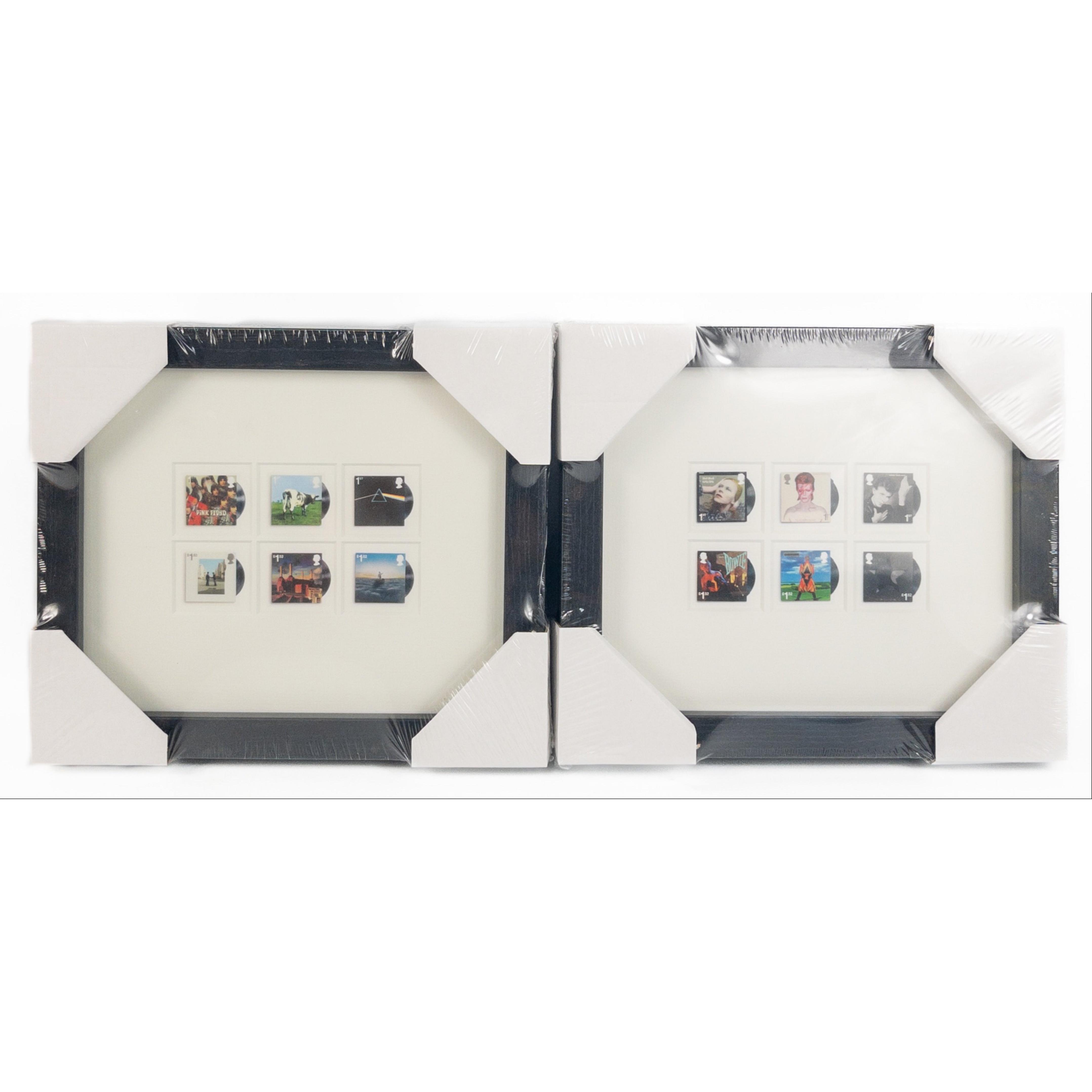 ROYAL MAIL stamps - a framed set of six first class stamps of DAVID BOWIE, unopened, also a set of six first class PINK FLOYD stamps unopenedApprox 2 pieces