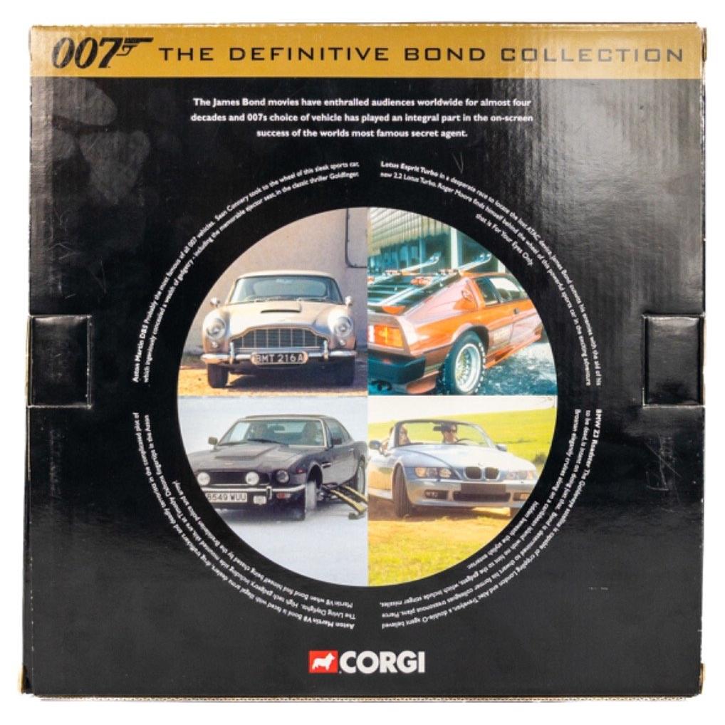 CORGI No cc99106 07 JAMES BOND The Definitive Collection commemorative 4 piece car film canister set to include Aston Martin DB5, Lotus Esprit Turbo, BMW Z3, Aston Martin V8 - still in its original packaging and in 'an unopened and as new condition'