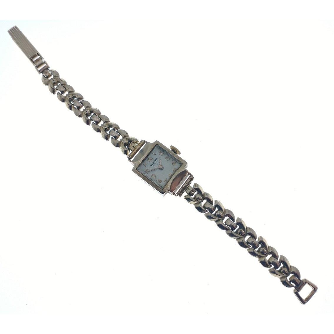 A 375 stamped inner case ladies wristwatch by RODANIA - bracelet is yellow metal - gross weight 20.55g approx