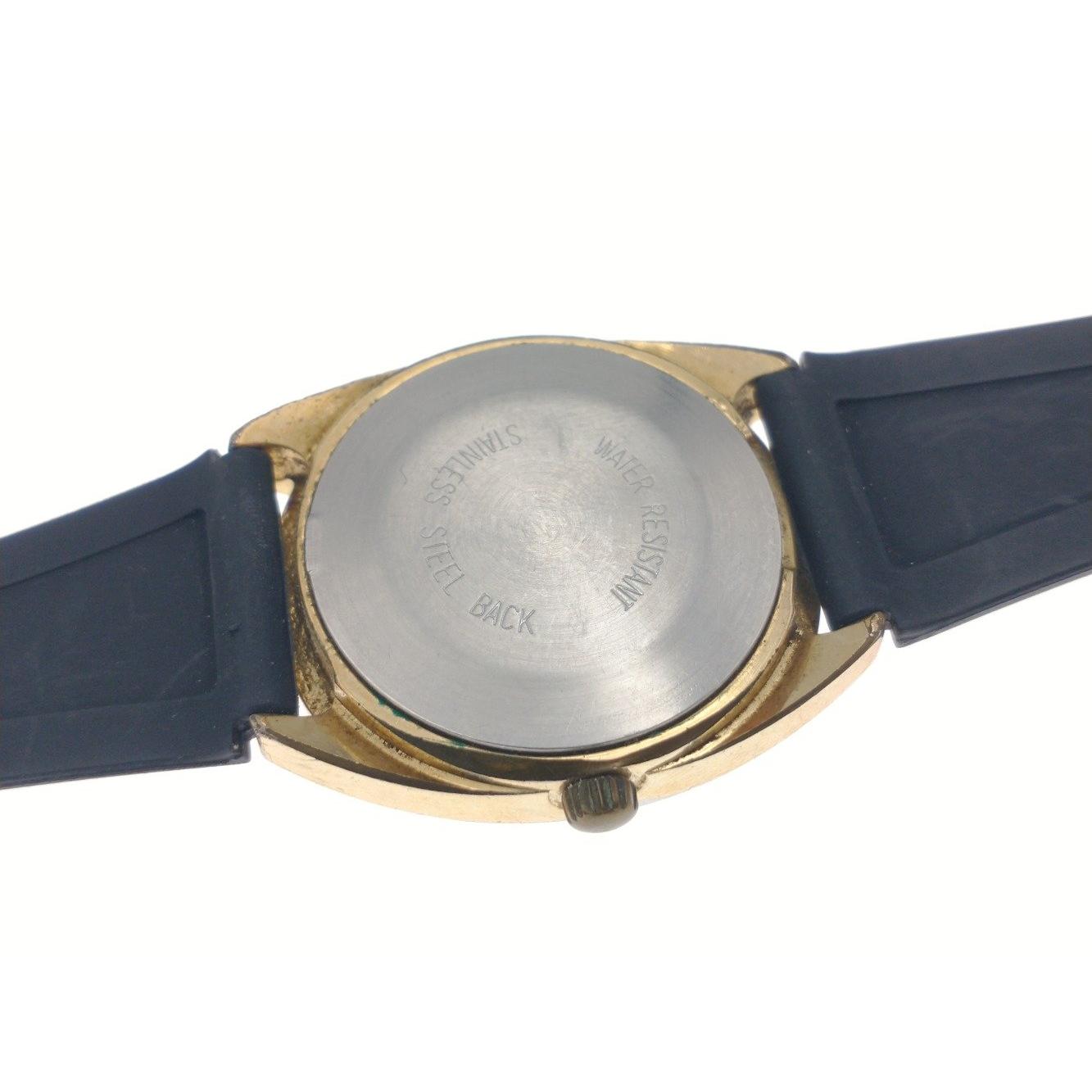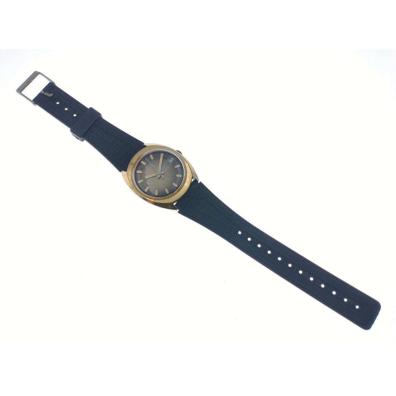 A nice clean TIMEX wristwatch with day and date adjust, yellow metal cased and stainless steel backed ticking away quite happily on valuation