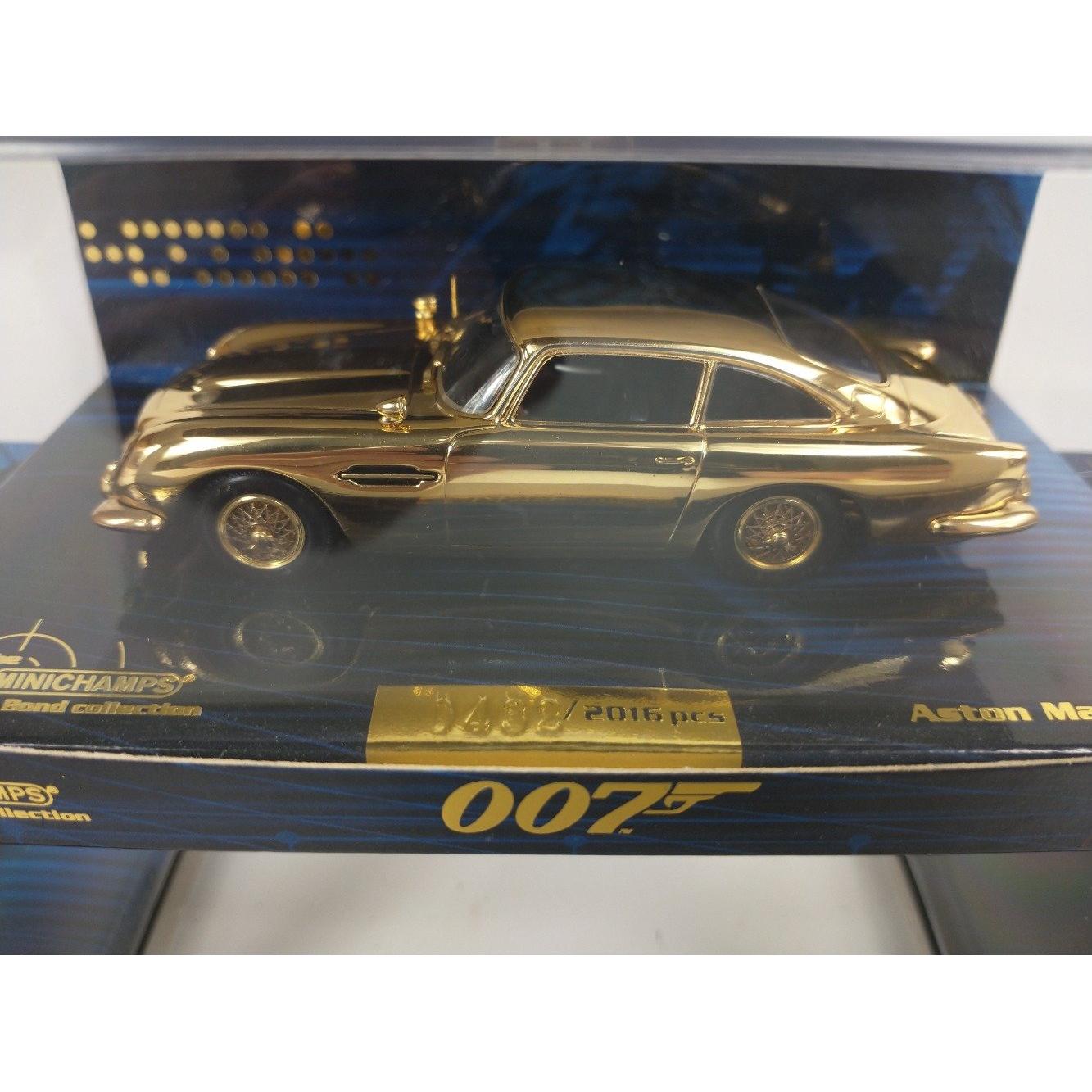 Three MINICHAMPS 1:43 scale models from the James Bond collection to include a limited edition number 1432 of 2016 GOLD ASTON MARTIN DBS , an FORD KA and an TOYOTA 2000 GT, all three models are unused and sealed in original boxes