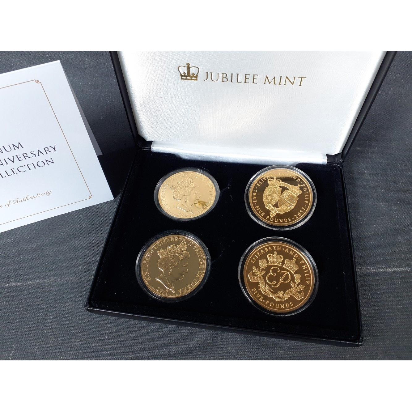 JUBILEE MINT. Set of 4 x 24ct gold-plated £5 platinum wedding coins boxed w/ COA. Contains four £5 coins from Alderney and Tristan Da CunhaApprox 1 pieces