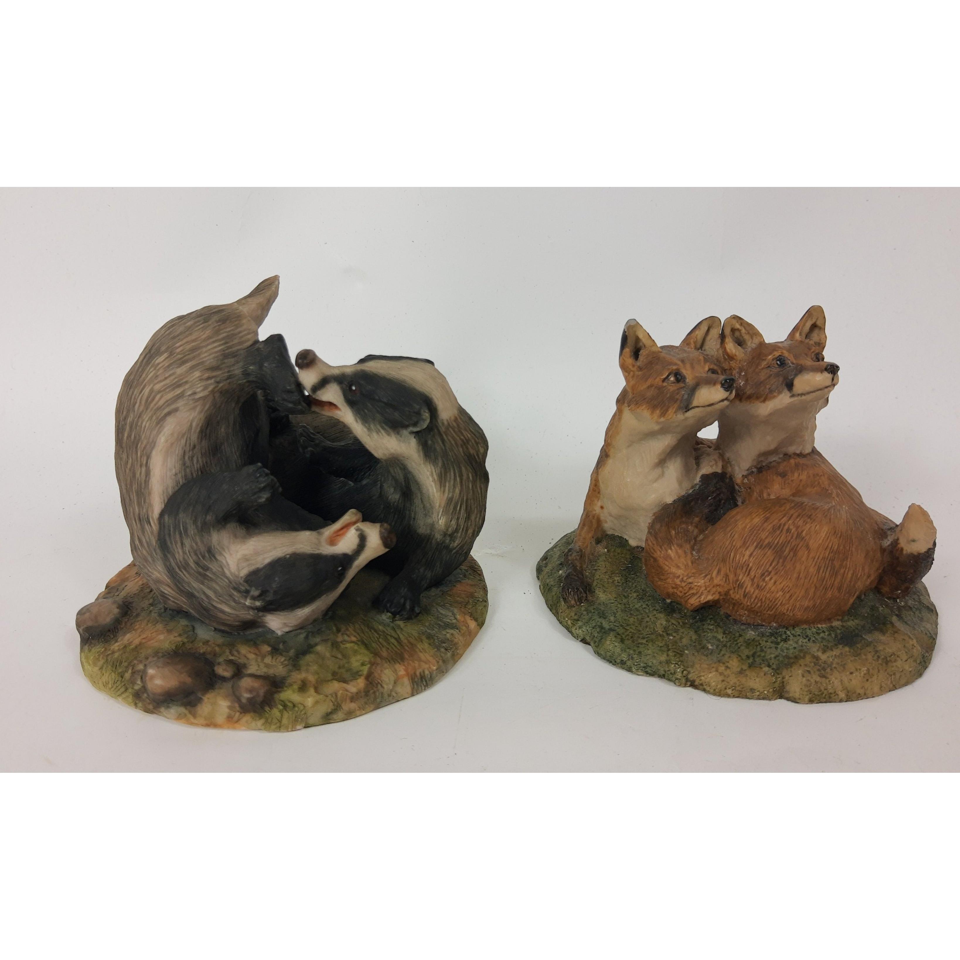 Two early BORDER FINE ARTS groups from 1976 and 77 signed by HAYTON one of foxes (slight chip from one ear) and badgers (no visible damage)Approx 2 pieces