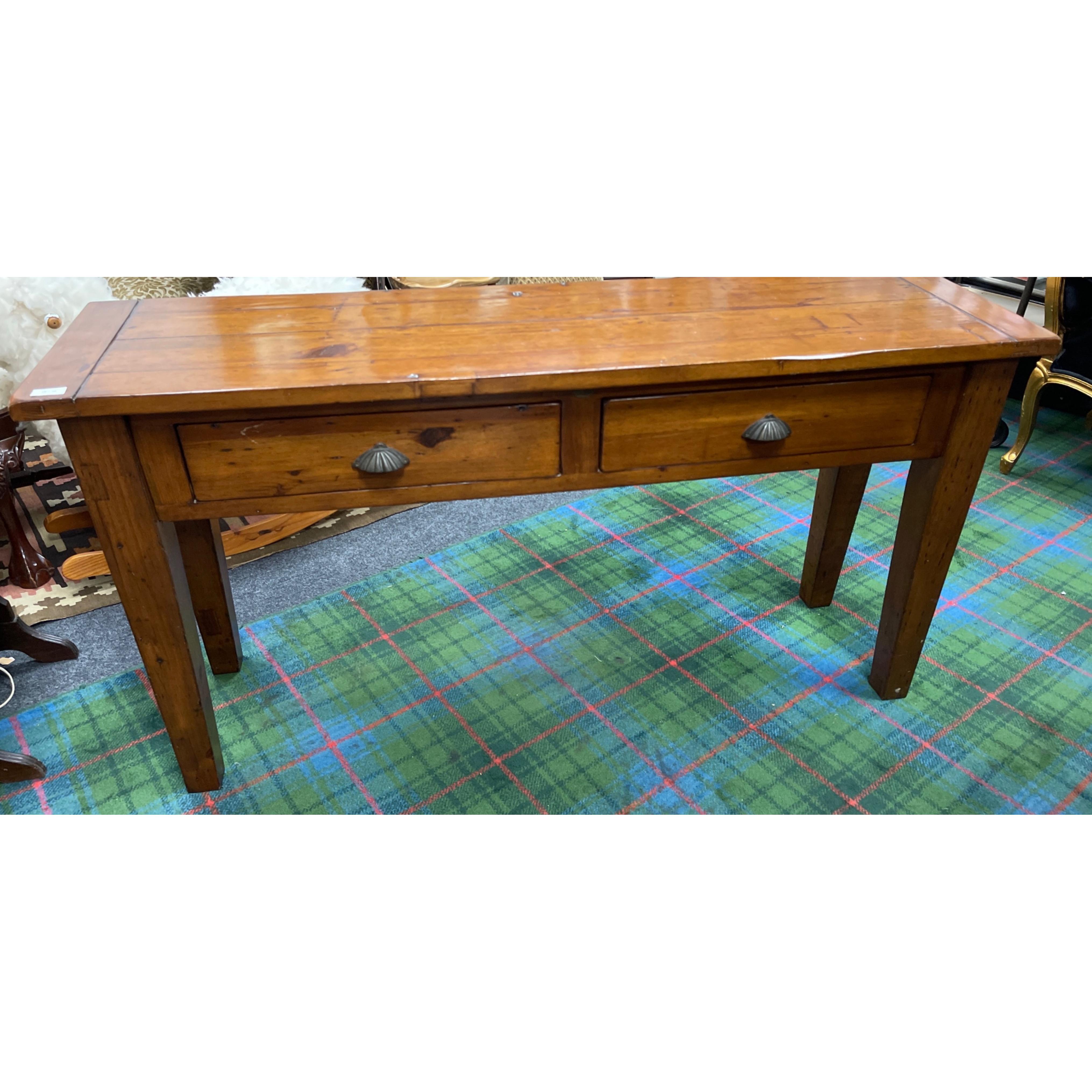 A nice plank-style long console table with two drawers and sturdy leg supports - dimensions 147cm width x 41cm depth x 76cm height