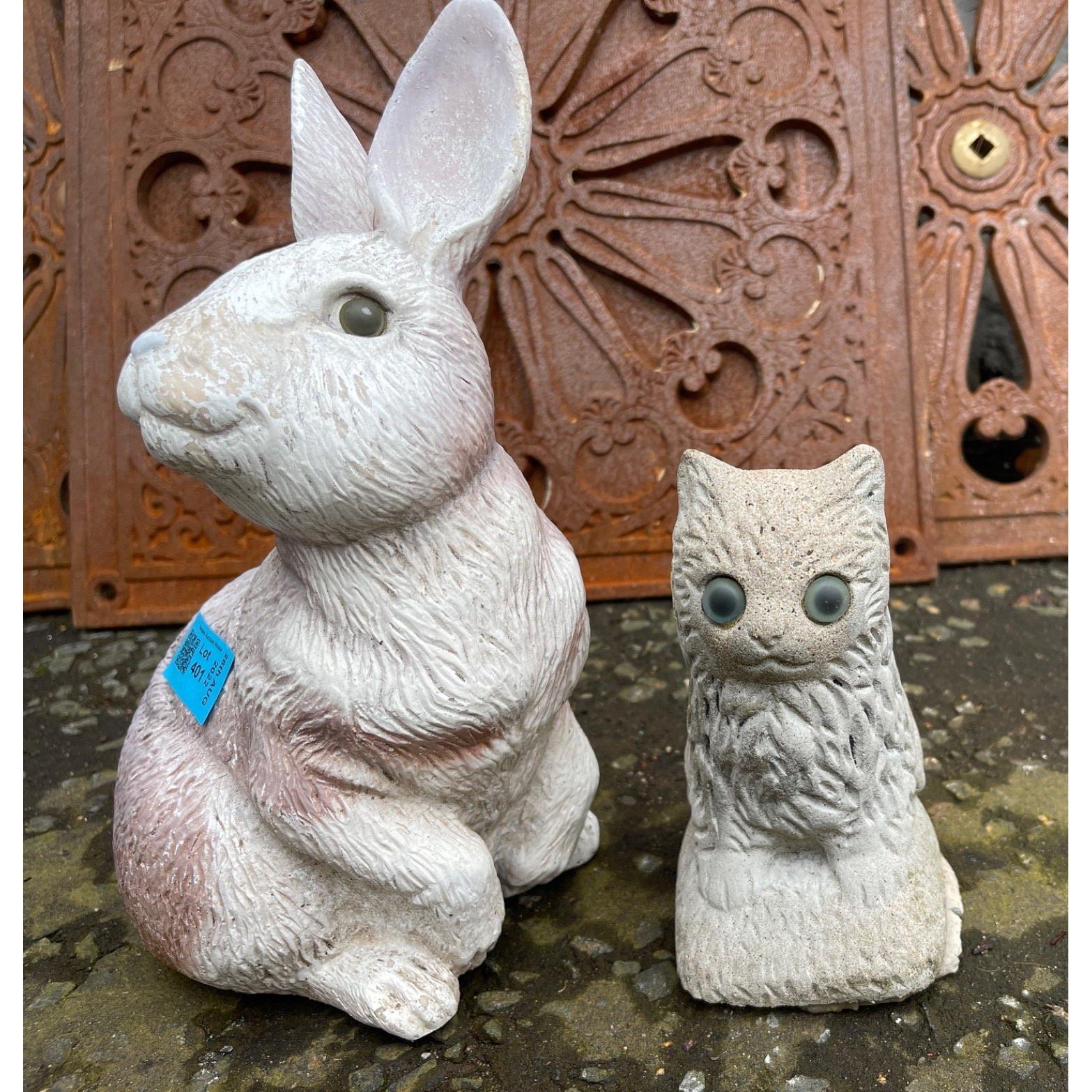 Cheerful characters to include a rabbit 26cm tall and a small cat with large eyes standing only 15cm highApprox 2 pieces