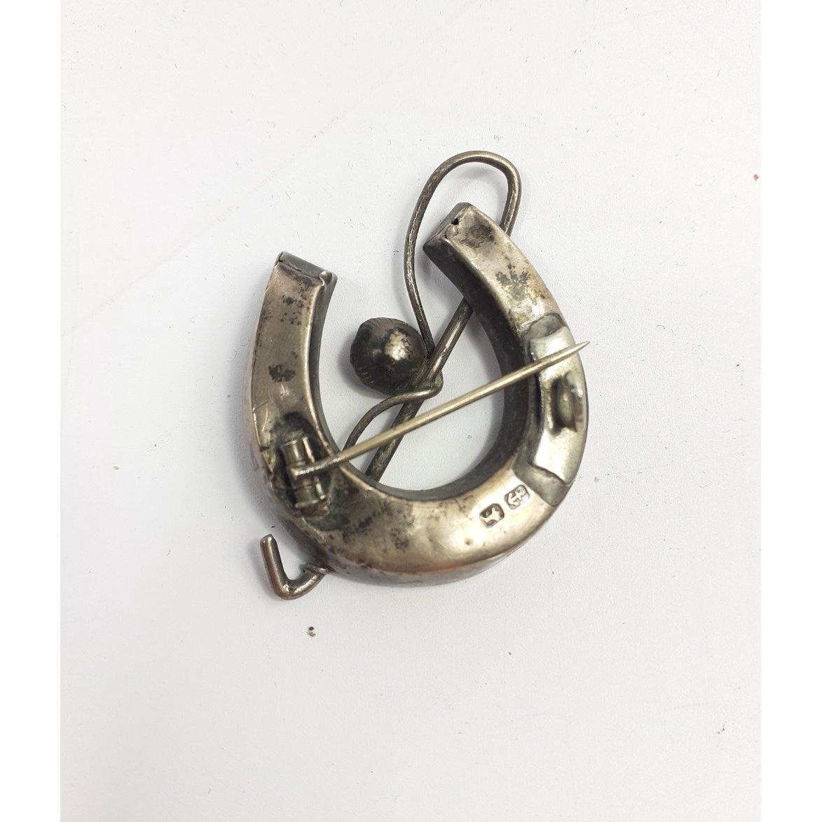 EQUESTRIAN INTEREST - A silver brooch of a lucky horse shoe with a riding crop, hallmarked Birmingham, with a clear stone 3cmW approx, gross weight 6gApprox 1 pieces