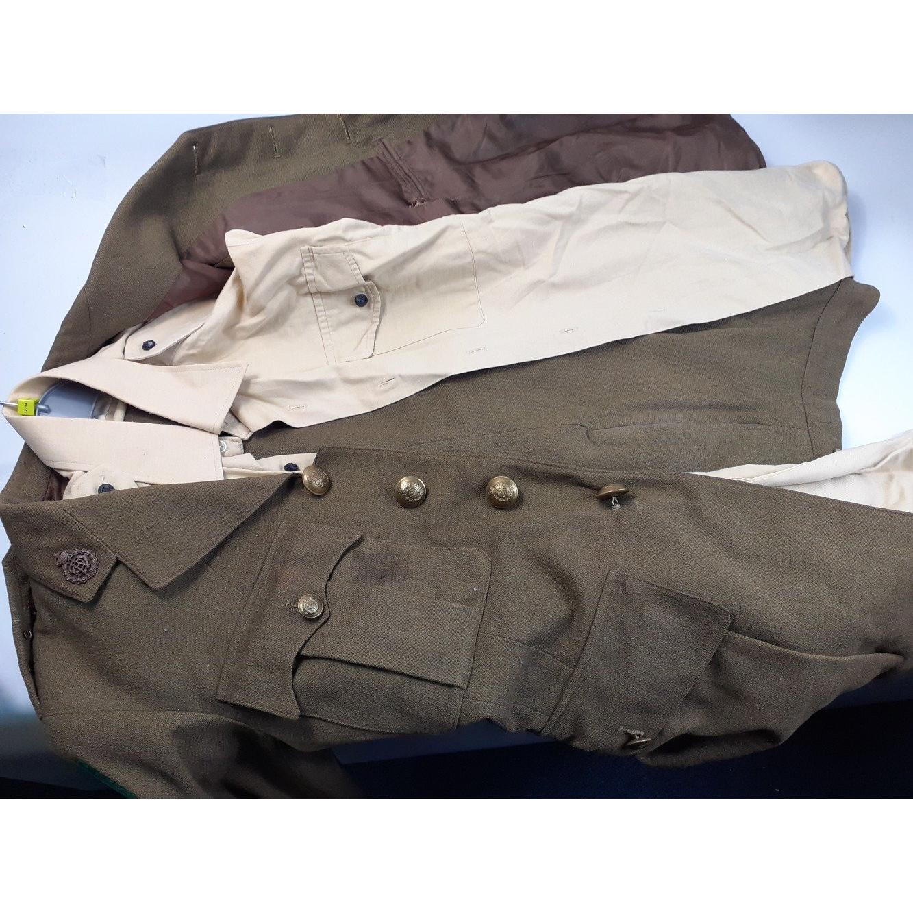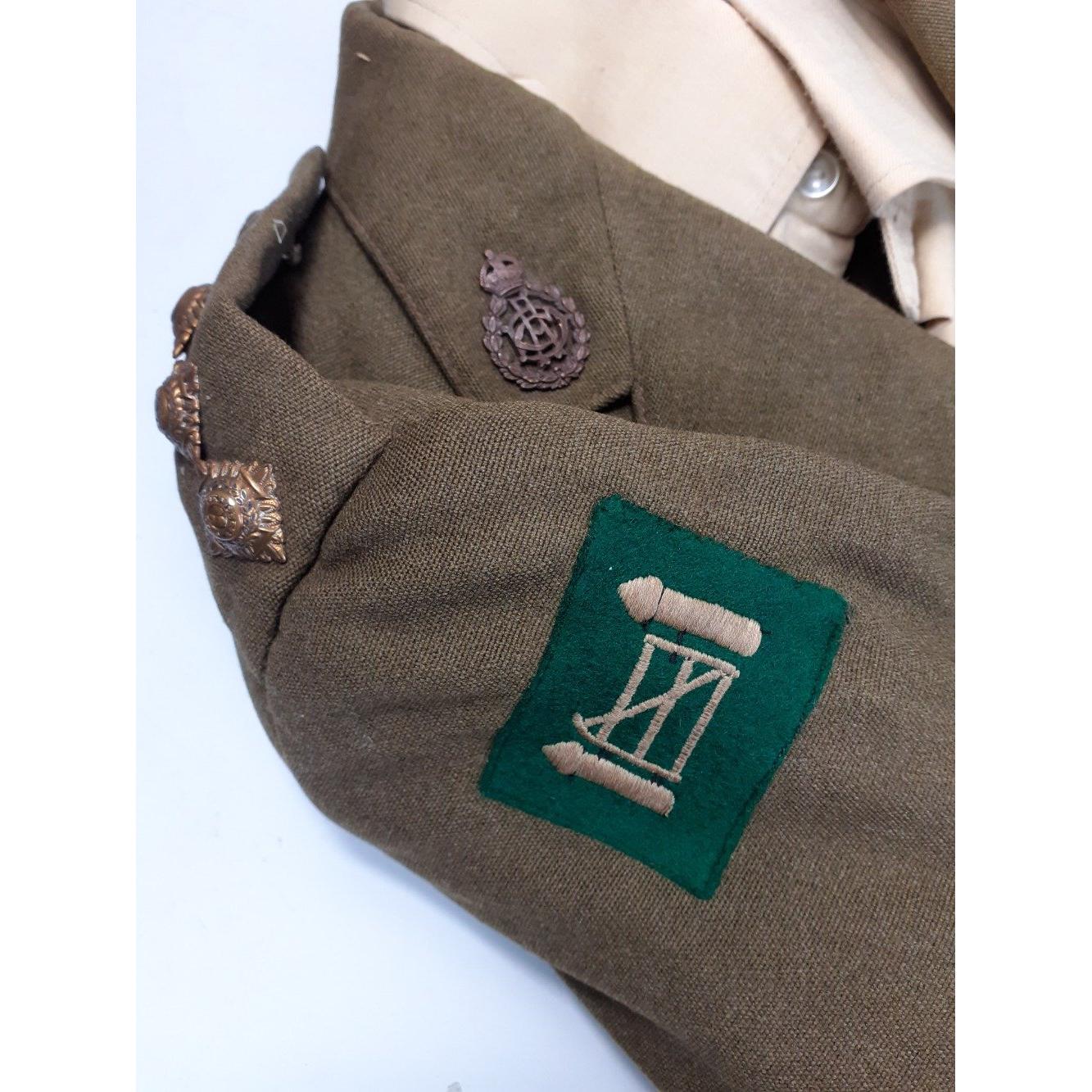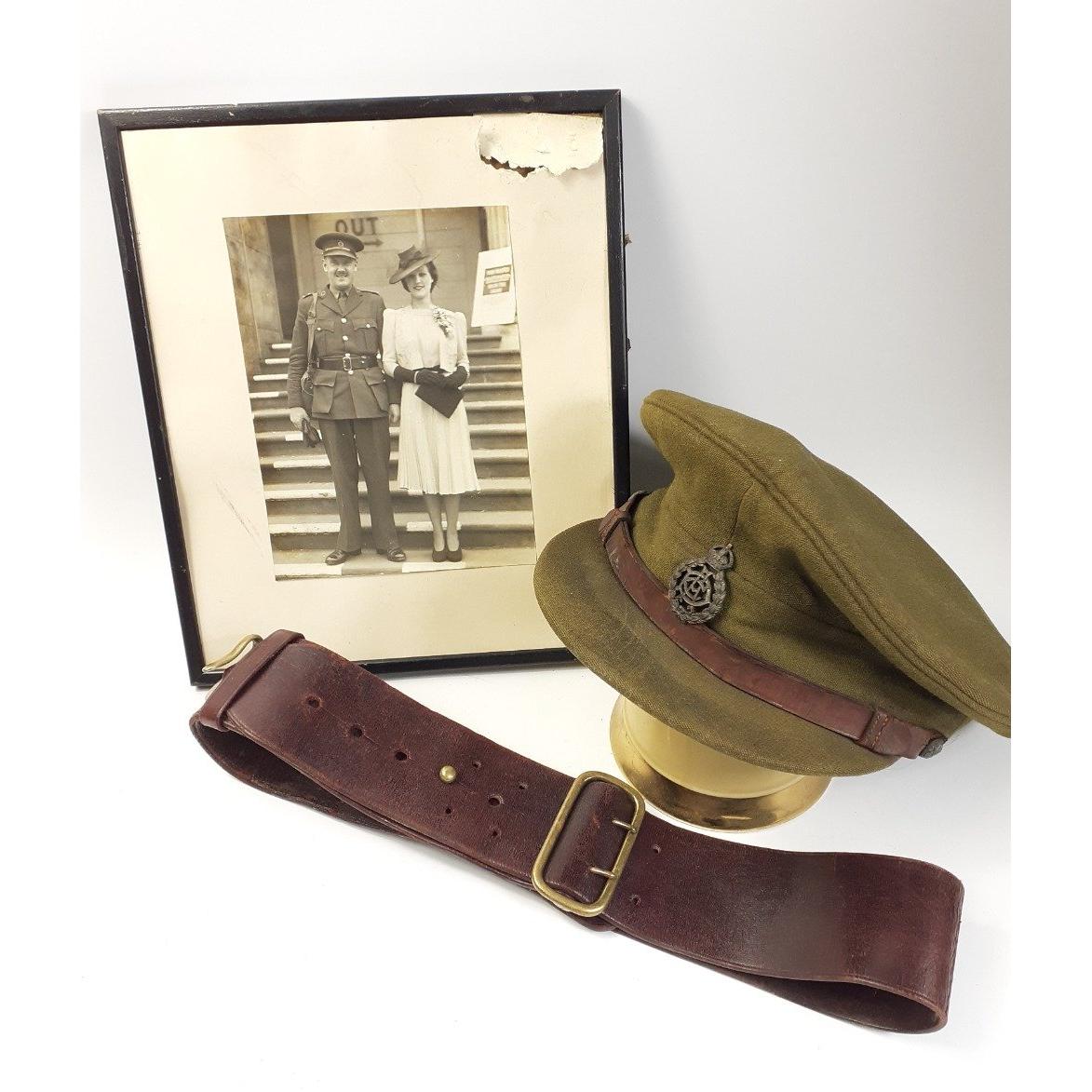 WWII Captain. Full Uniform with interesting Northern Ireland shoulder patches. Badges indicate Army Dental Corps. Includes Cap, Jacket, Trousers, shirt (possibly later in date), Belt and contemporary photo of the good Captain with his wife. All in good used order.
