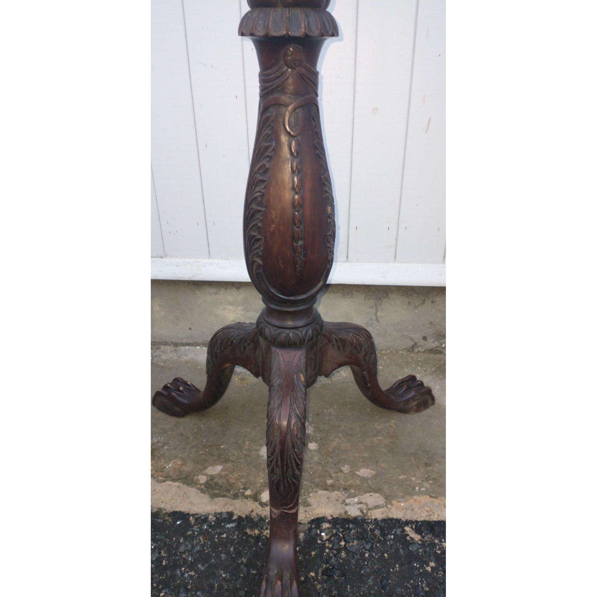 A three-legged carved wooden base for a torchere standing 105cm tall approxApprox 1 pieces