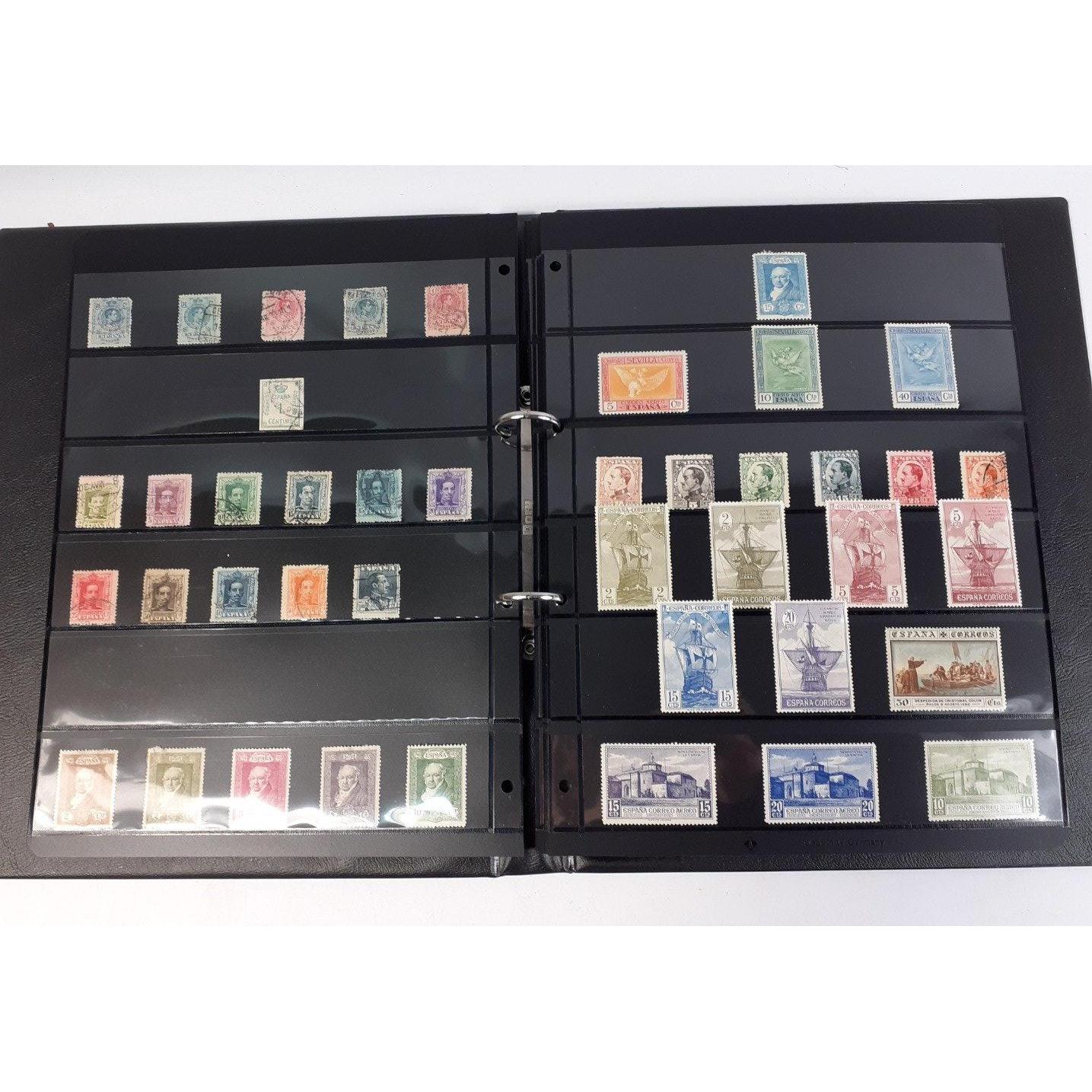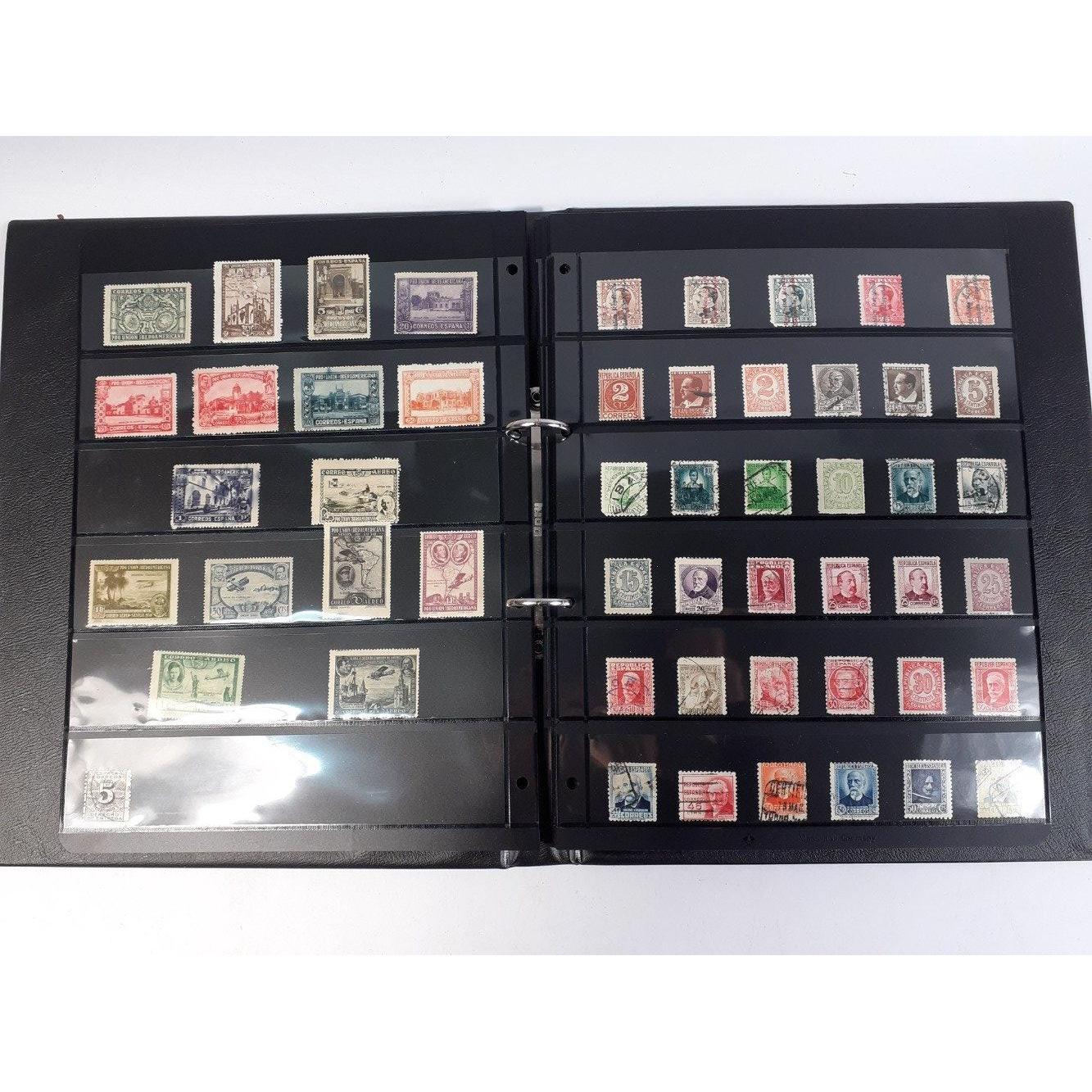 SPAIN STAMP ALBUM - an album containing stock card pages with an interesting collection of early and later Spanish stamps. Includes early issues, Columbus exploration set, 1930s Air Mail set and Civil War Barcelona issues. Mainly used. An interesting collection well presented.
