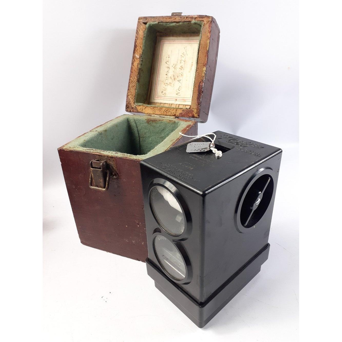 A vintage BAKELITE Skymaster GHOST Pigeon Racing Clock in a wooden case
