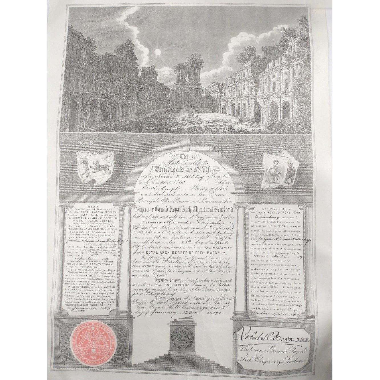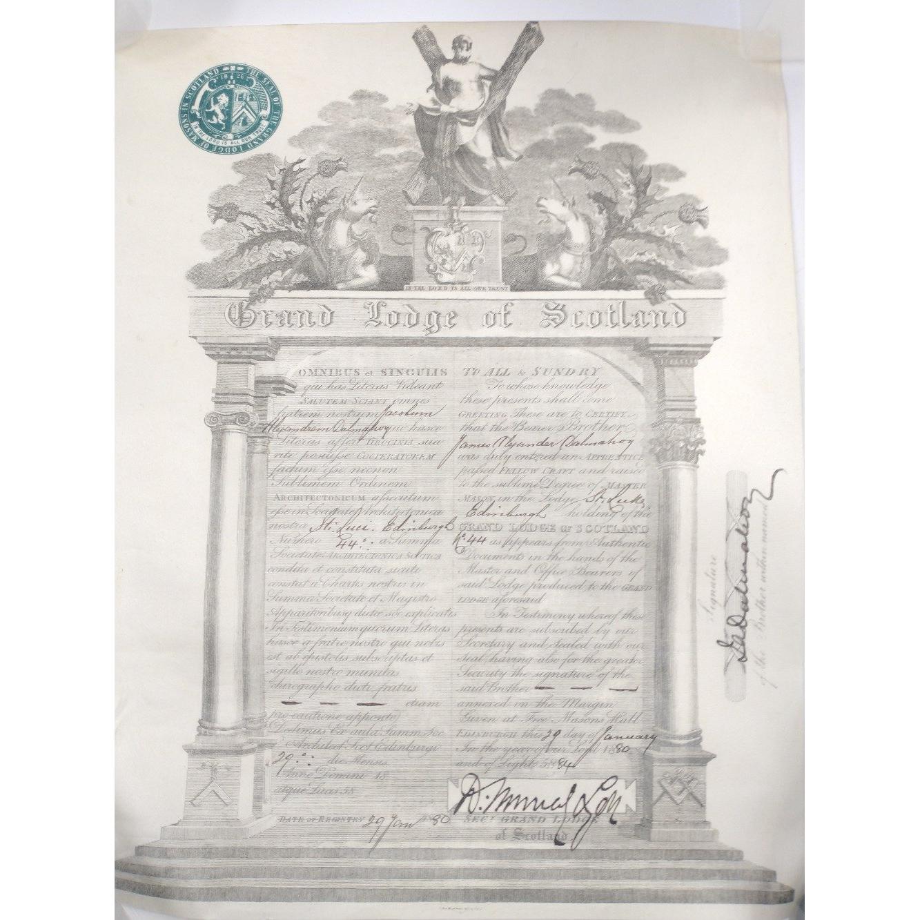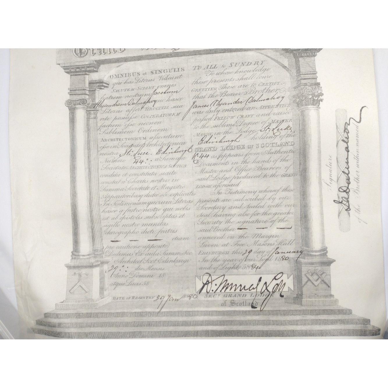 FREEMASONS INTEREST! A fascinating lot to include a University of Edinburgh 19th century graduation certificate including JOSEPH LISTER'S signature, a Freemason Master Mason certificate from 1880, an 1889 freemason certificate from the Navy & Military Royal Arch Chapter No 40 ratifying the recipient into the mysteries of the ROYAL ARCH DEGREE OF FREE MASONRY and a membership certificate for the Speculative Society of Edinburgh University 1953