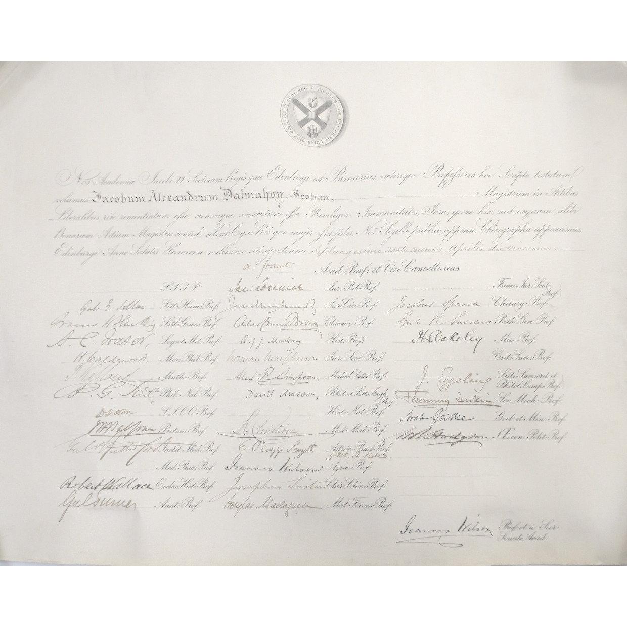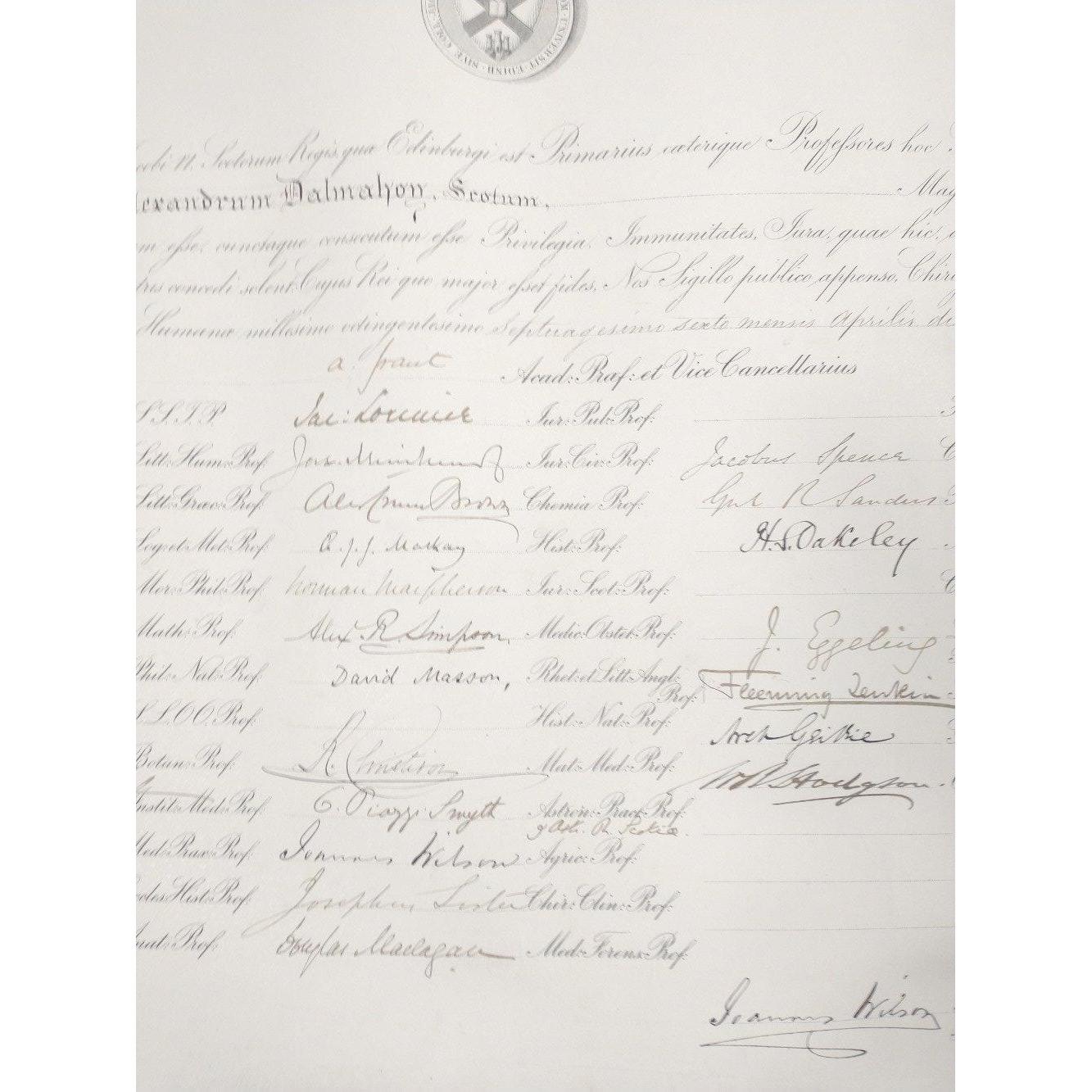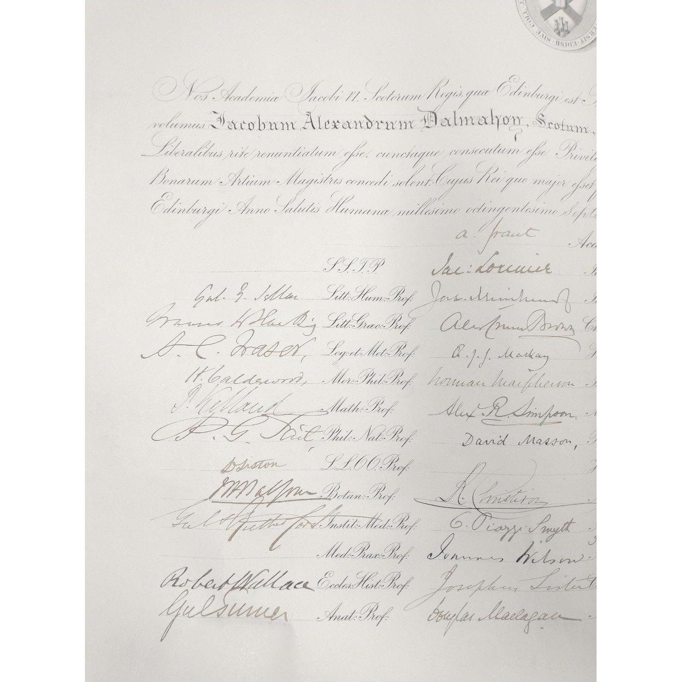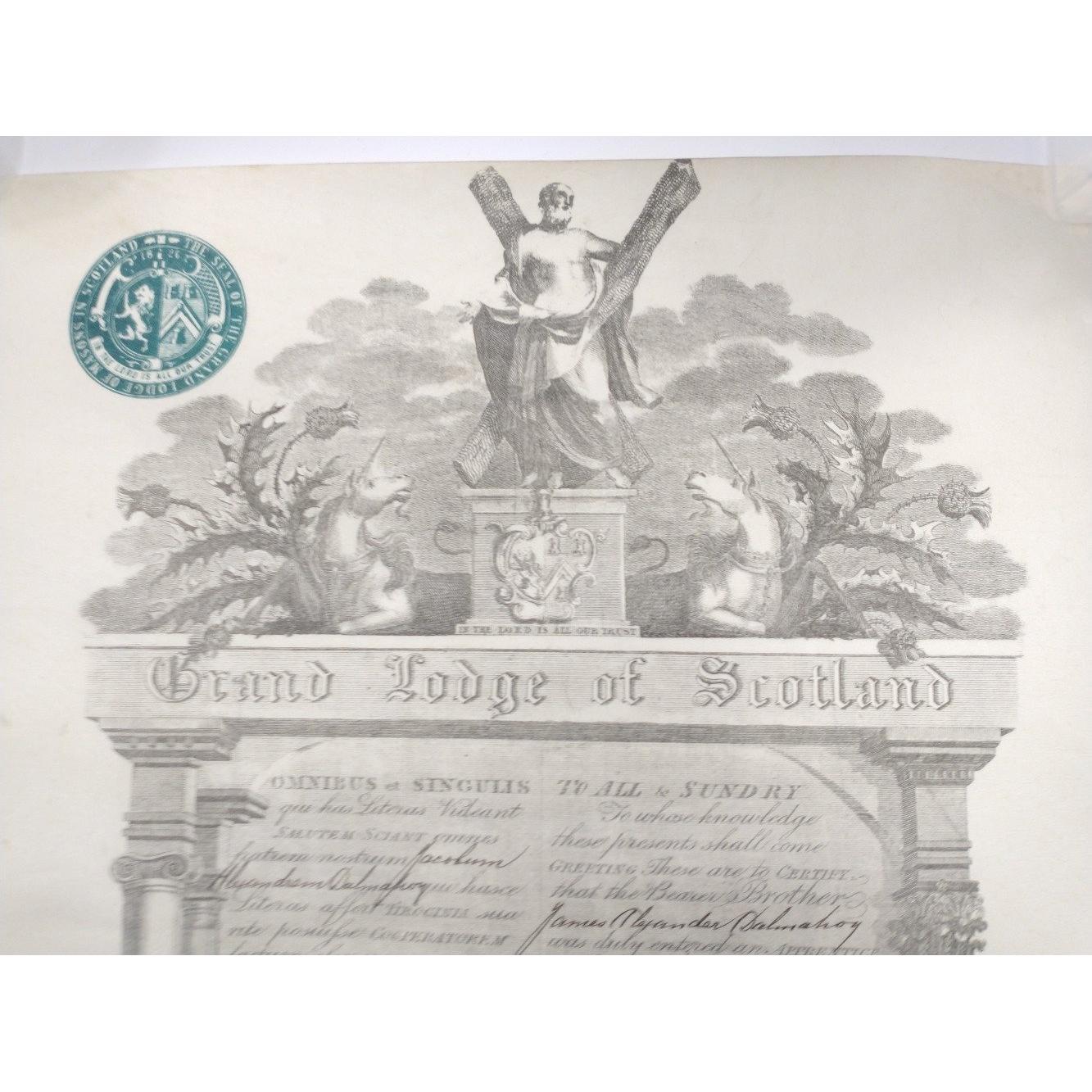 FREEMASONS INTEREST! A fascinating lot to include a University of Edinburgh 19th century graduation certificate including JOSEPH LISTER'S signature, a Freemason Master Mason certificate from 1880, an 1889 freemason certificate from the Navy & Military Royal Arch Chapter No 40 ratifying the recipient into the mysteries of the ROYAL ARCH DEGREE OF FREE MASONRY and a membership certificate for the Speculative Society of Edinburgh University 1953