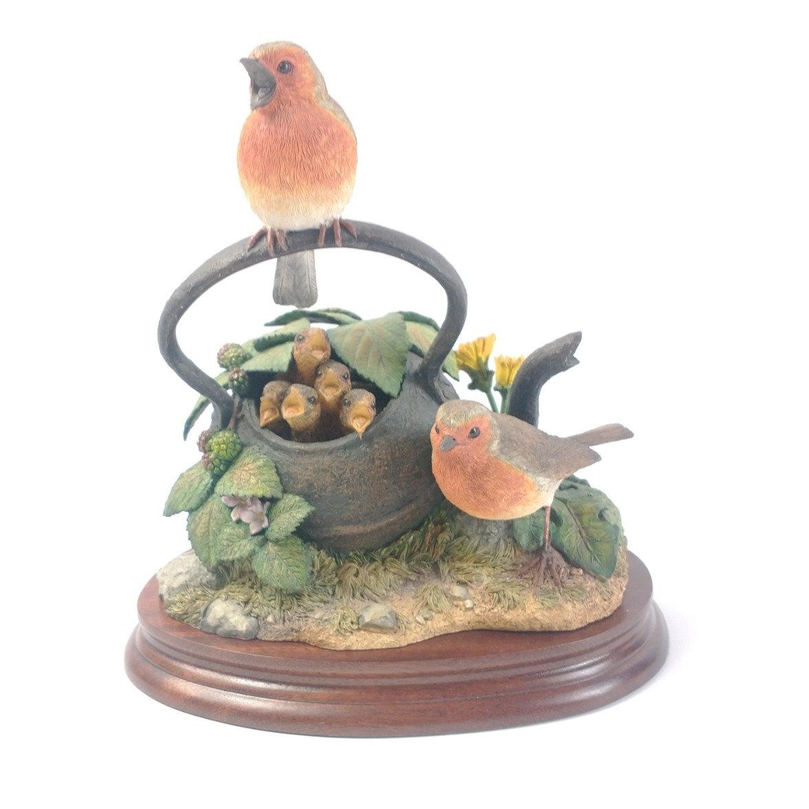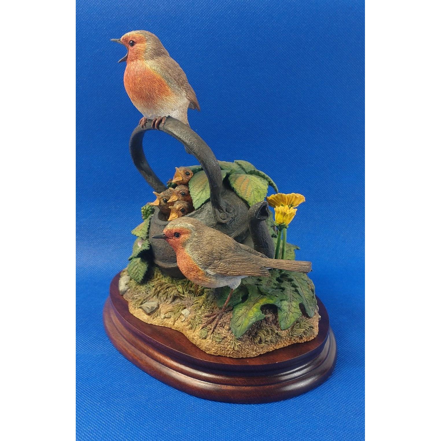 BORDER FINE ARTS B0880 Border Fine Arts "Second Brewed" of Robins in a kettle still in original box and packaging and in good condition with no obvious signs of damage or items missing apart from one half of original packaging