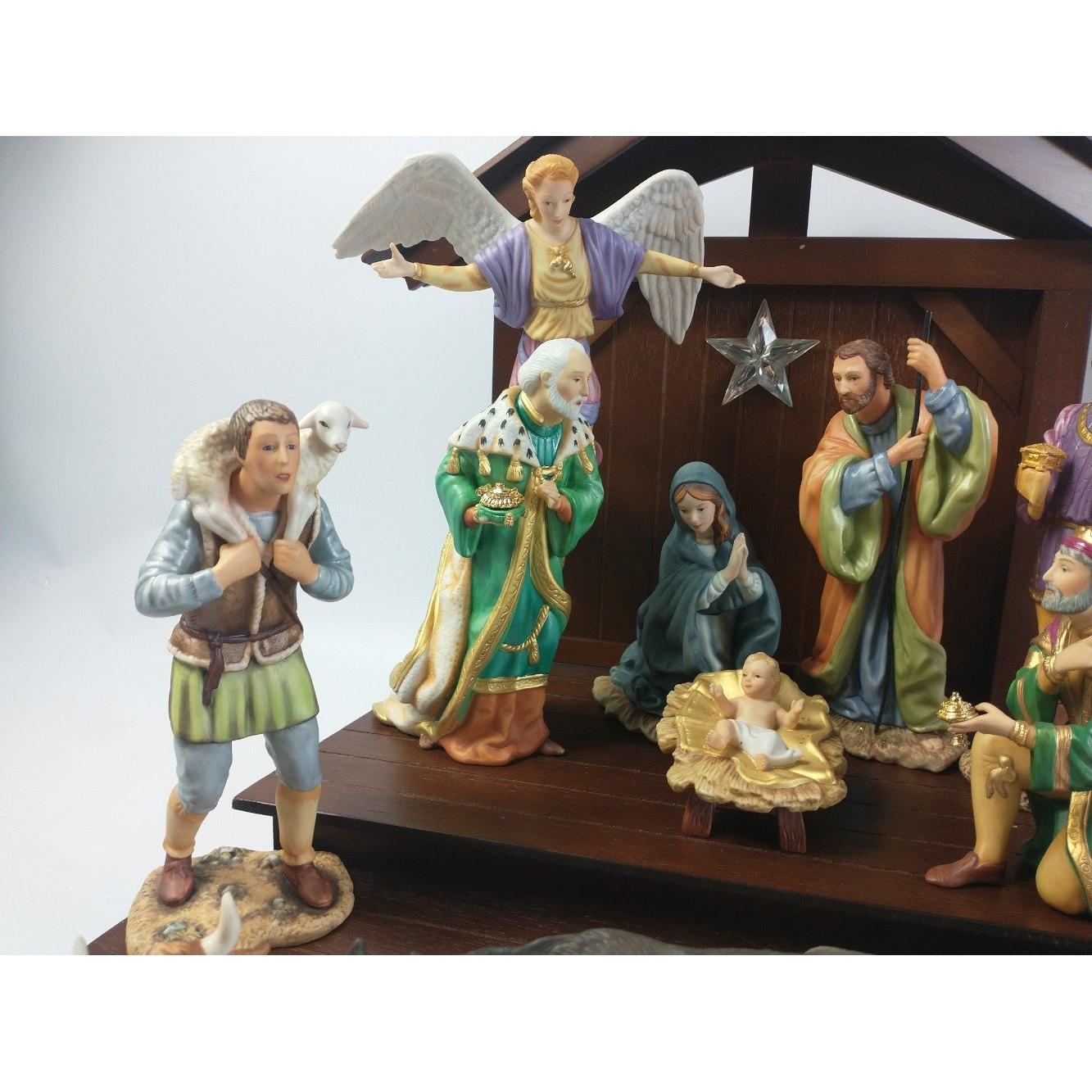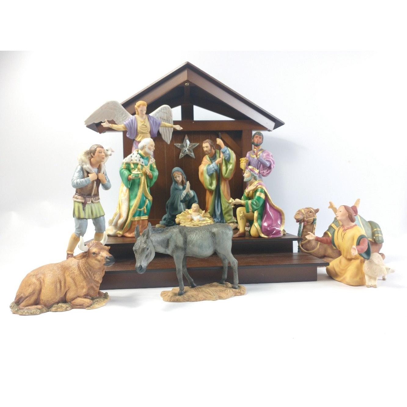 Establish a new family Christmas tradition with this complete quality 14 piece Franklin Mint NATIVITY SCENE dating from 1989. All pieces have been lovingingly stored and thus have no visible damage.
