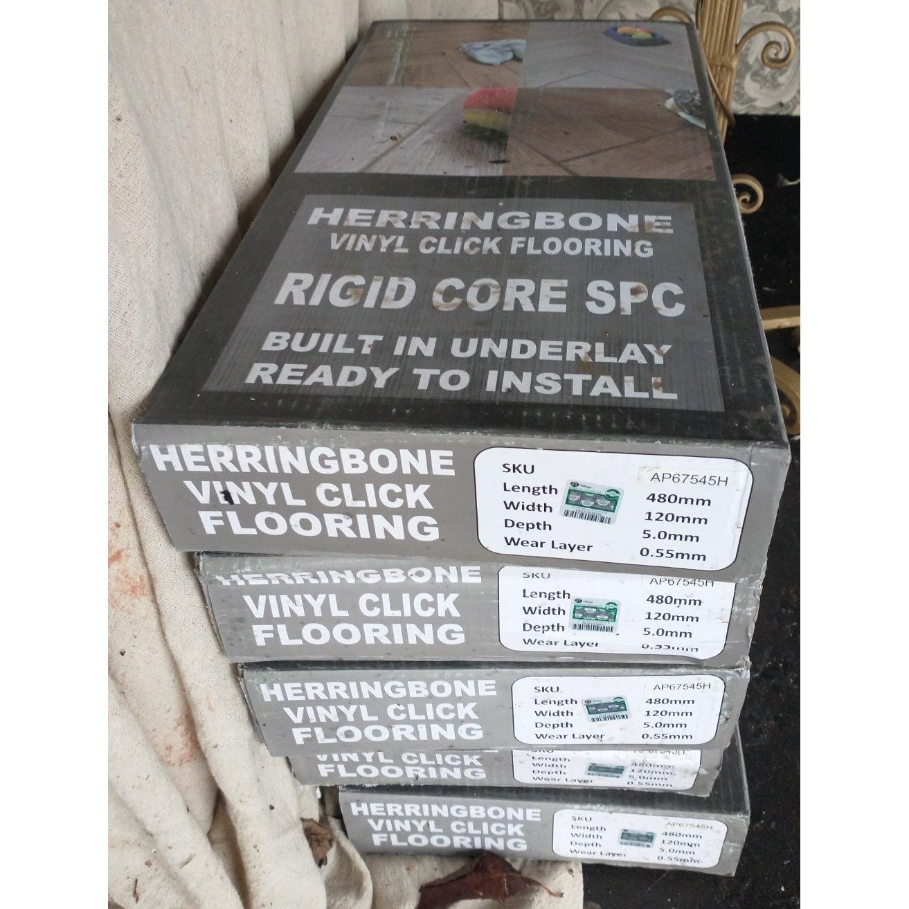 Bought recently!!! Five packs of Herringbone vinyl click flooring as new, most packs unopened. Specs: Length: 480mm Width: 120mm Depth: 5.0mm Approx 40 per pack