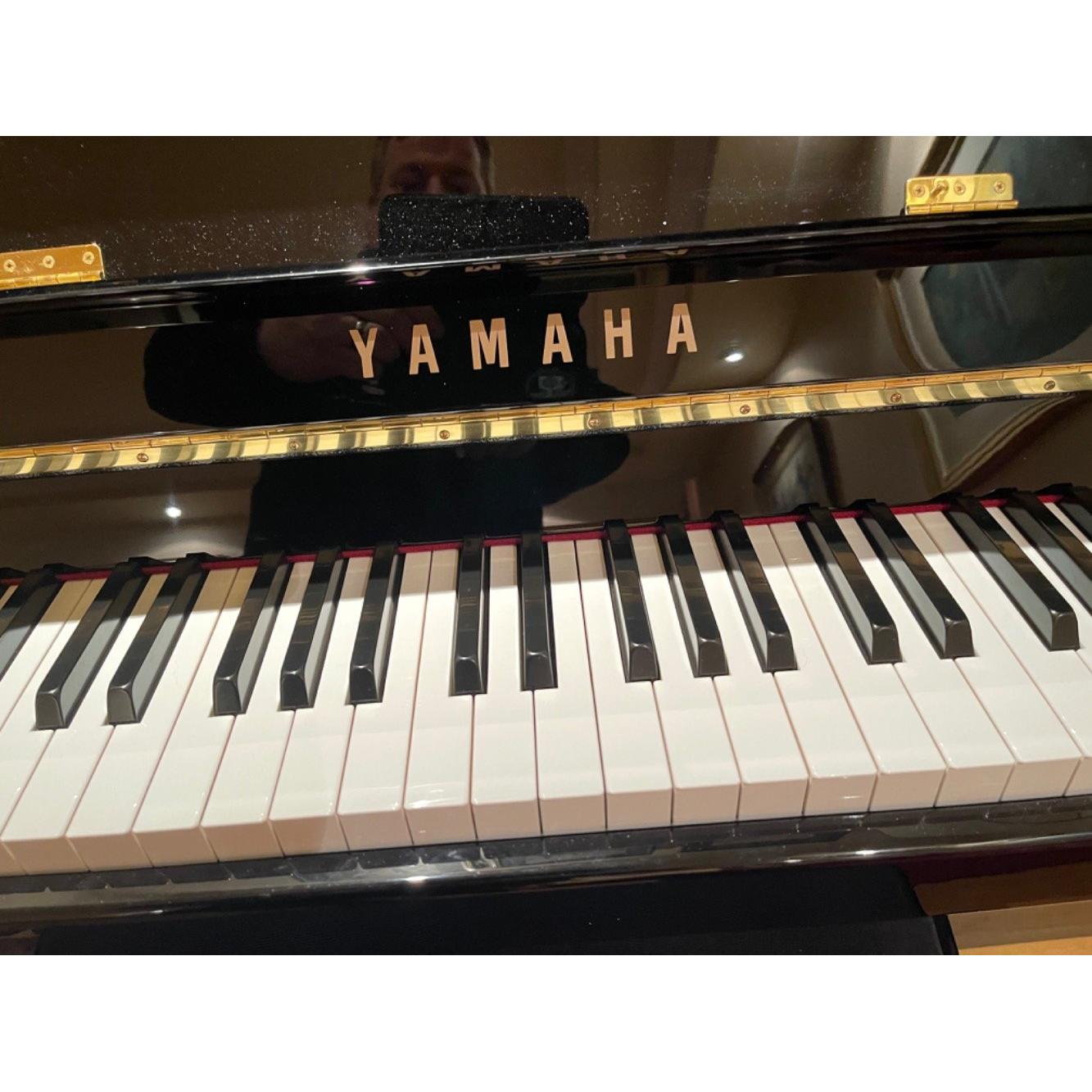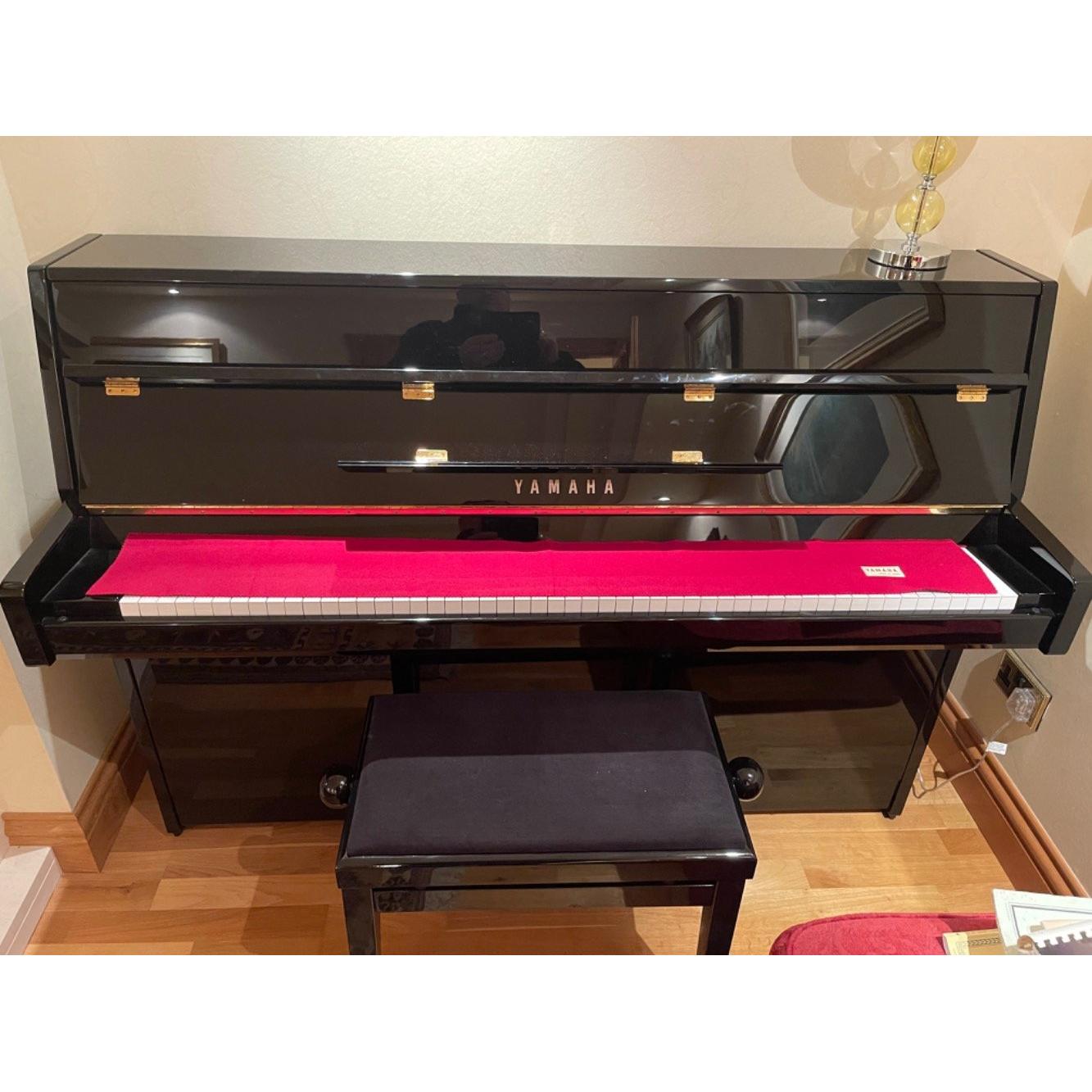 A YAMAHA upright piano in a black patent finish complete with matching piano stool (with full accompanying documentation) - this piano is in EXCEPTIONAL condition with no marks scratches or any signs of damage - this piano has been lovingly cared for by its owner from new.