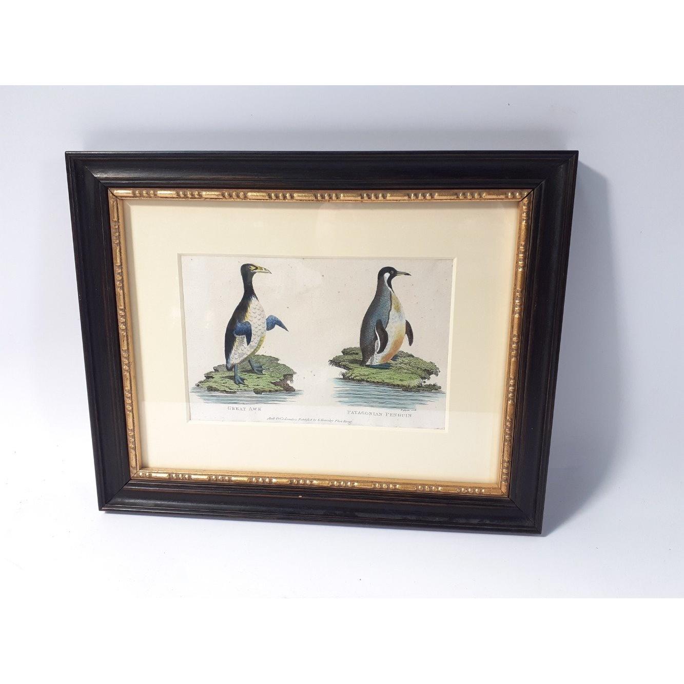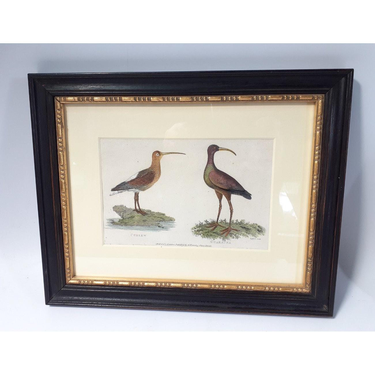 Two 19th century SHAWS ZOOLOGY 19th Century copperplate engravings with later hand colour circa 1810 - picture dimensions 7” x 5” depicting Curlew and Guarauna birds and the second image a great Awk and a Patagonian Penguin
